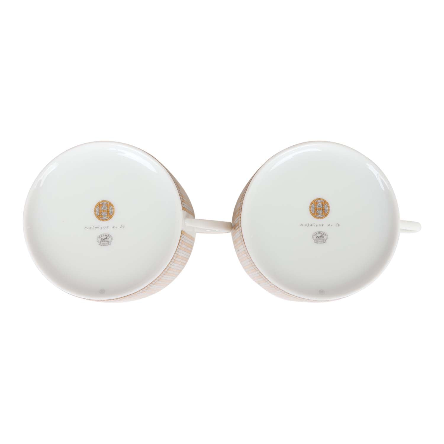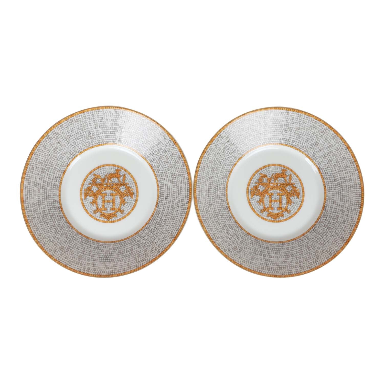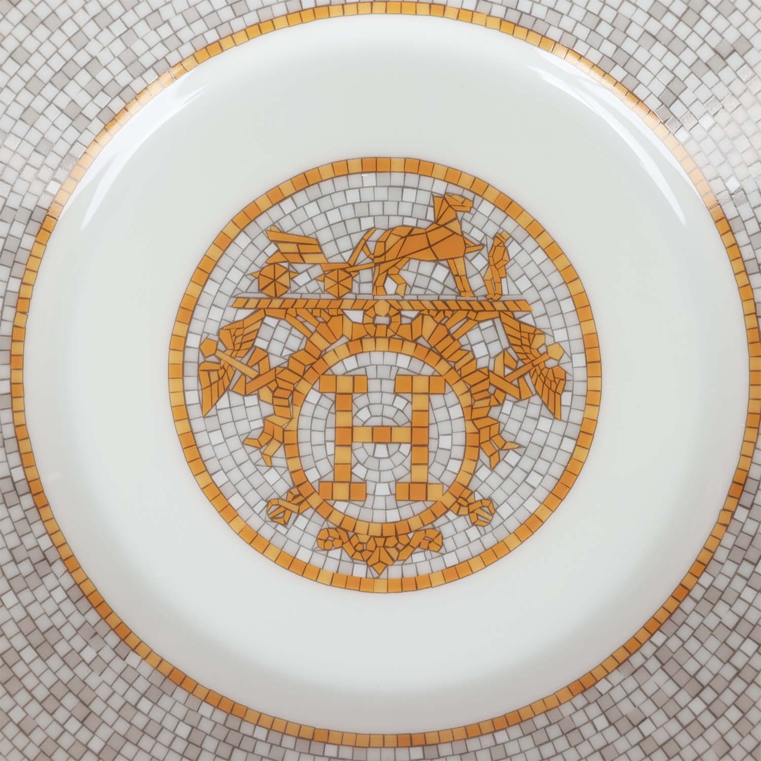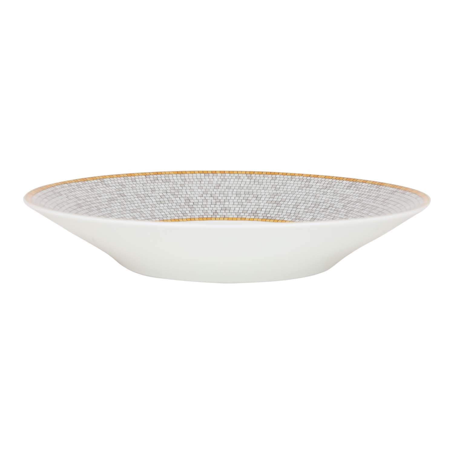 This "Mosaique Au 24" tea cup and saucer set is in gold and grey porcelain.