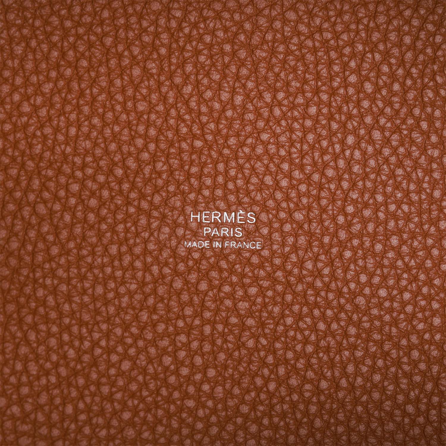 This Picotin Lock is in Gold clemence leather with palladium hardware, contrast stitching, and two top handles with Nata undertone.