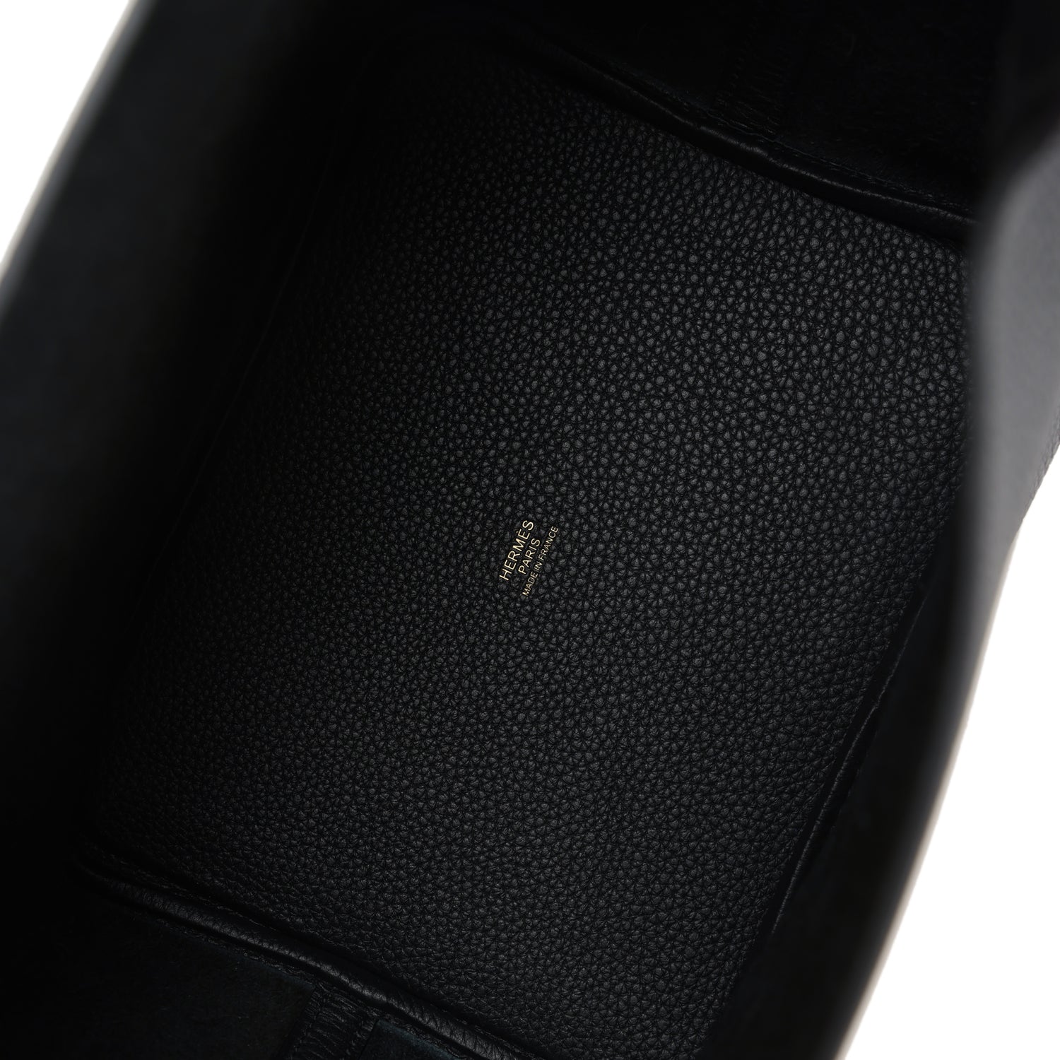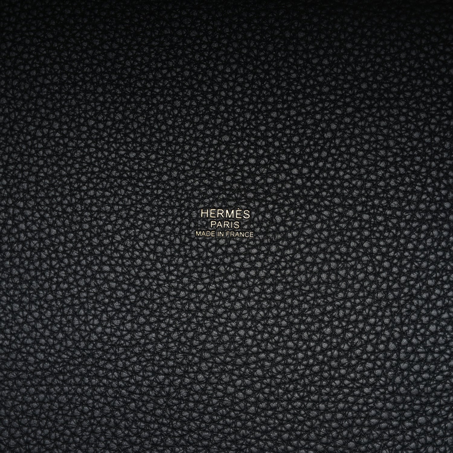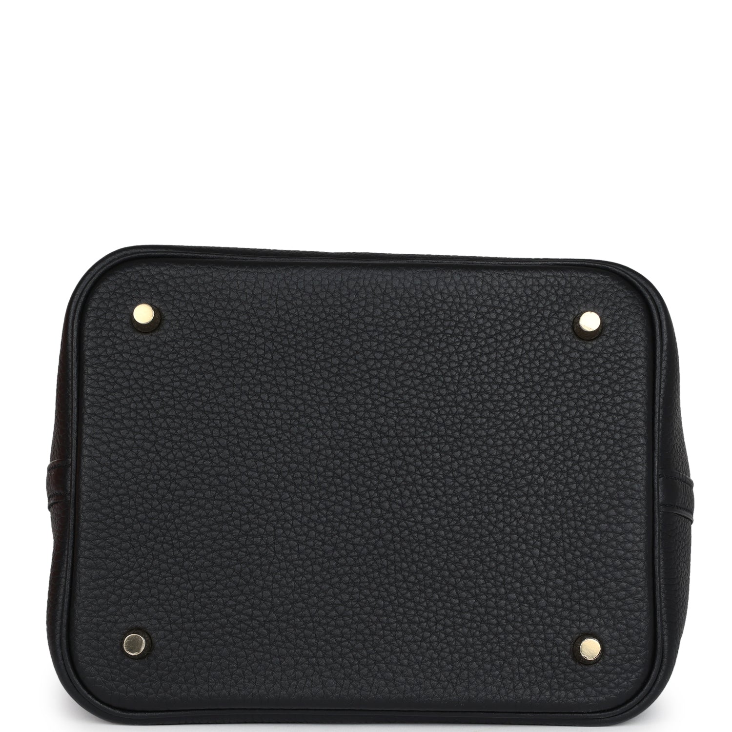This Picotin Lock 22 is in Black clemence leather with gold hardware and has tonal stitching with two top handles.