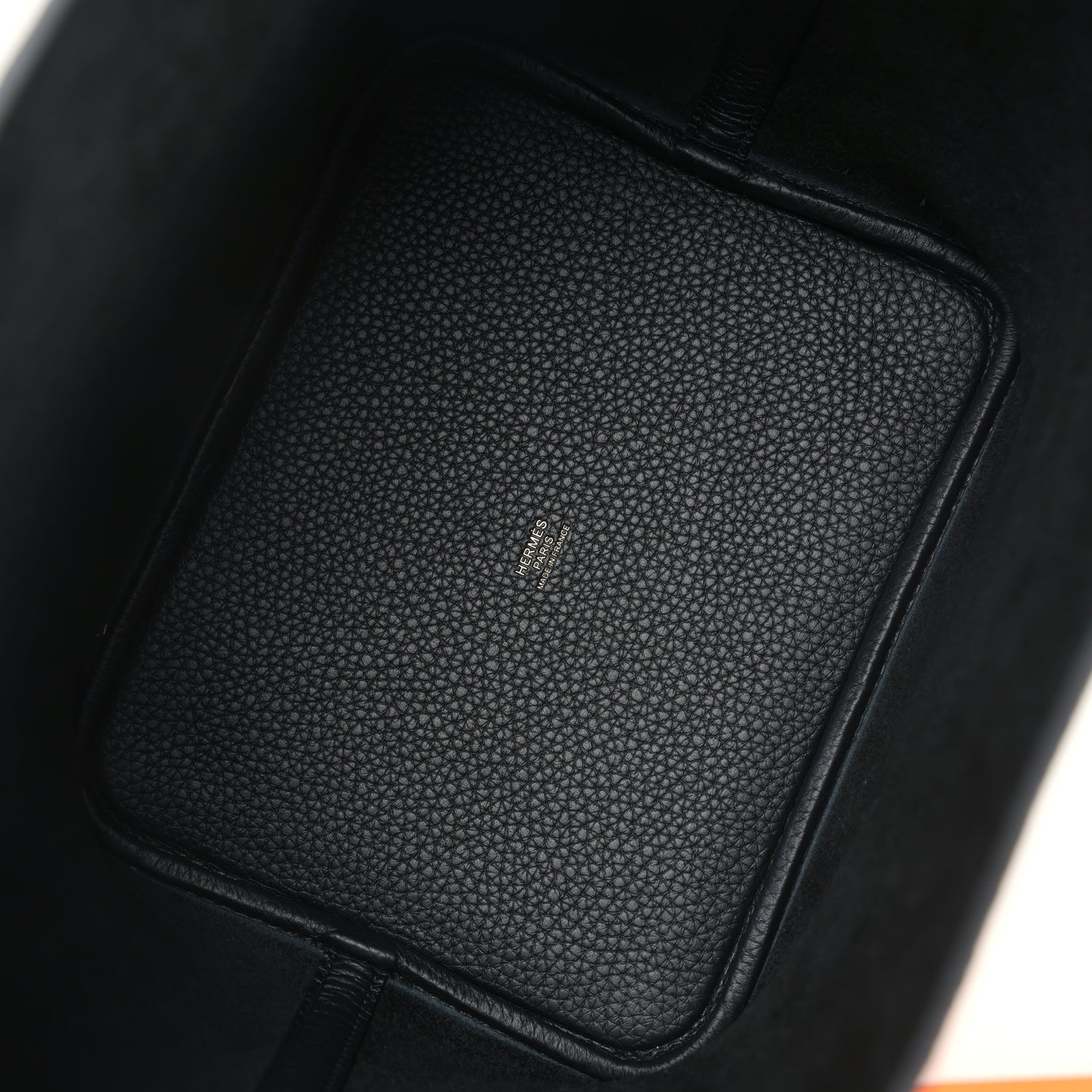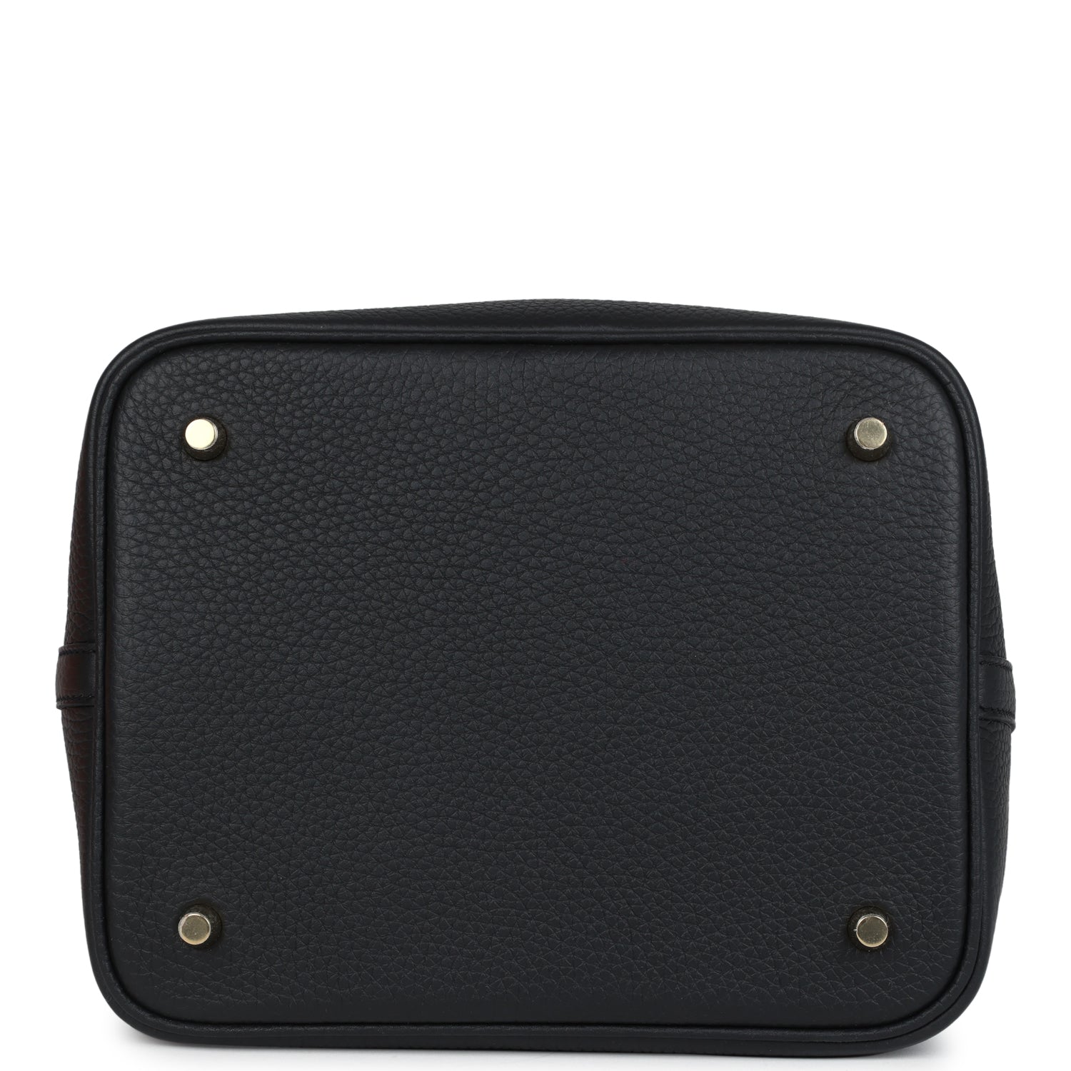 This Picotin Lock 22 is in Black clemence leather with gold hardware and has tonal stitching with two top handles.