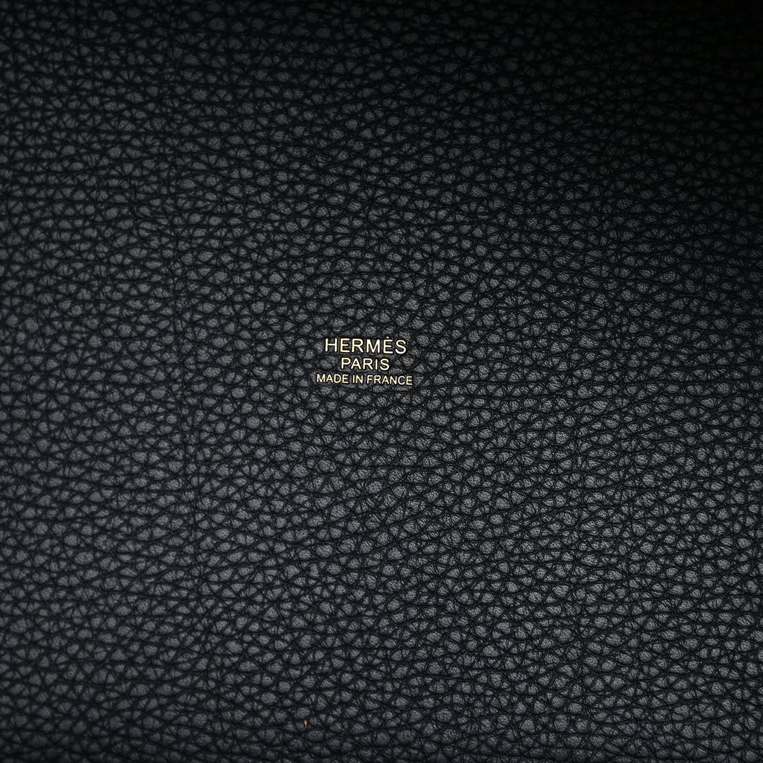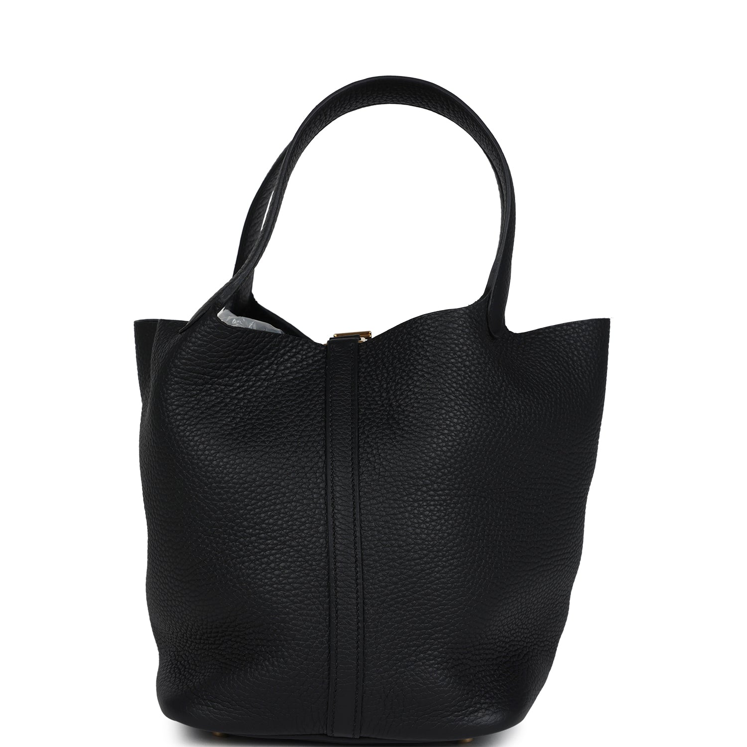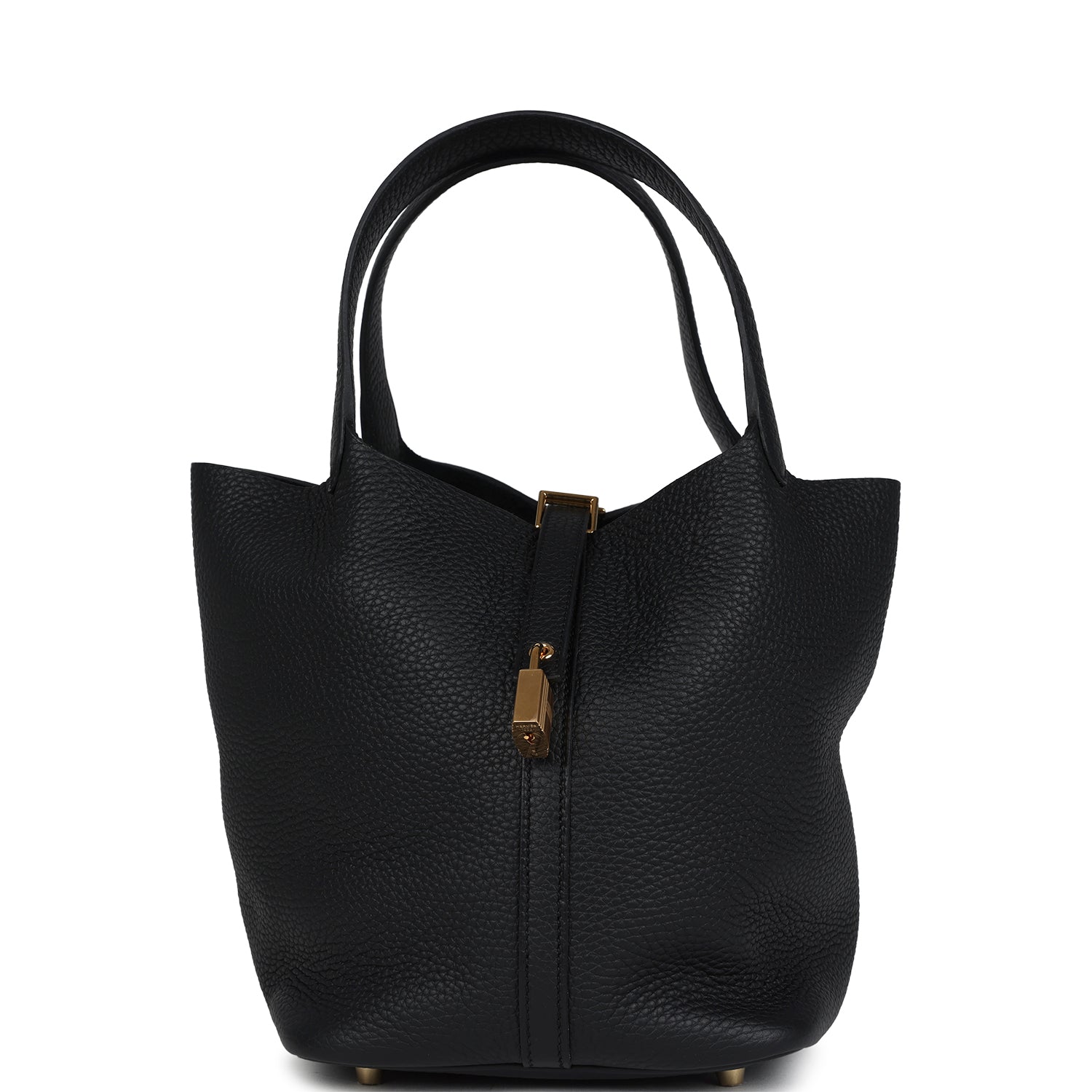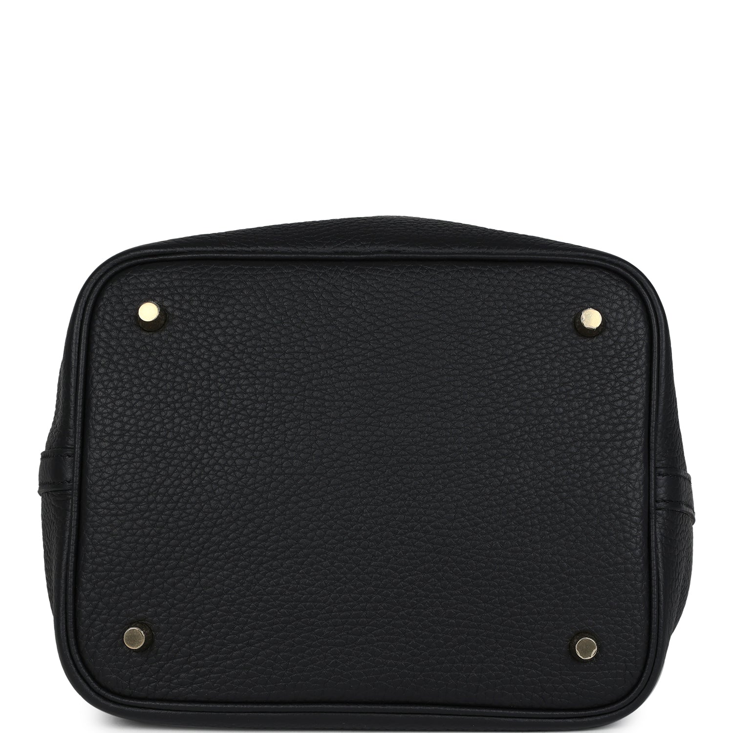 This Picotin Lock 22 is in Black clemence leather with gold hardware and has tonal stitching with two top handles.