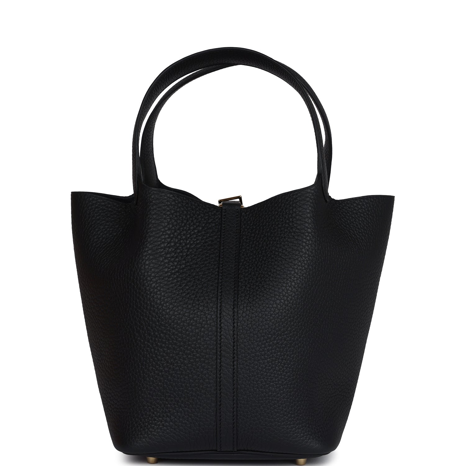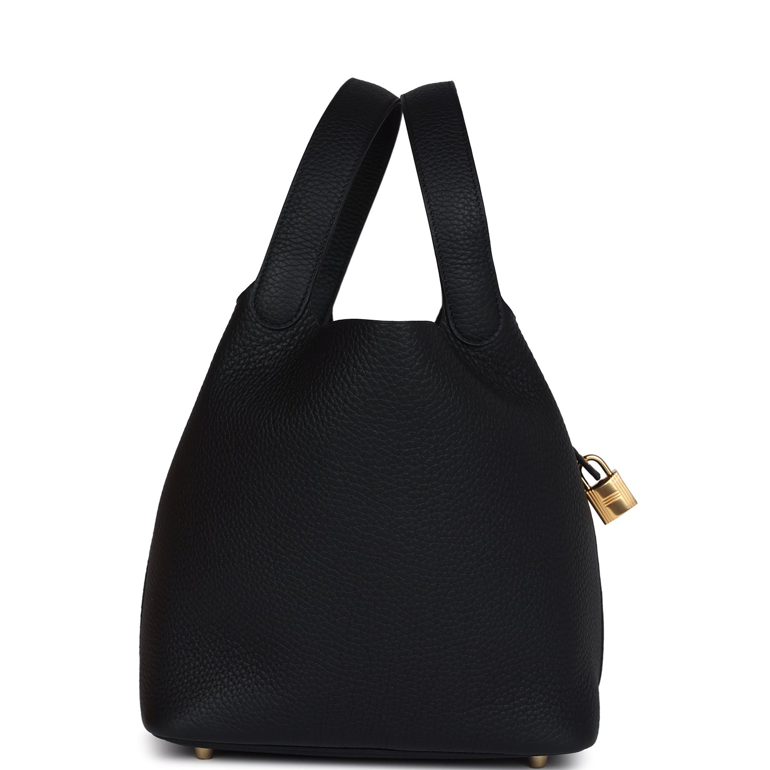 This Picotin Lock 22 is in Black clemence leather with gold hardware and has tonal stitching with two top handles.