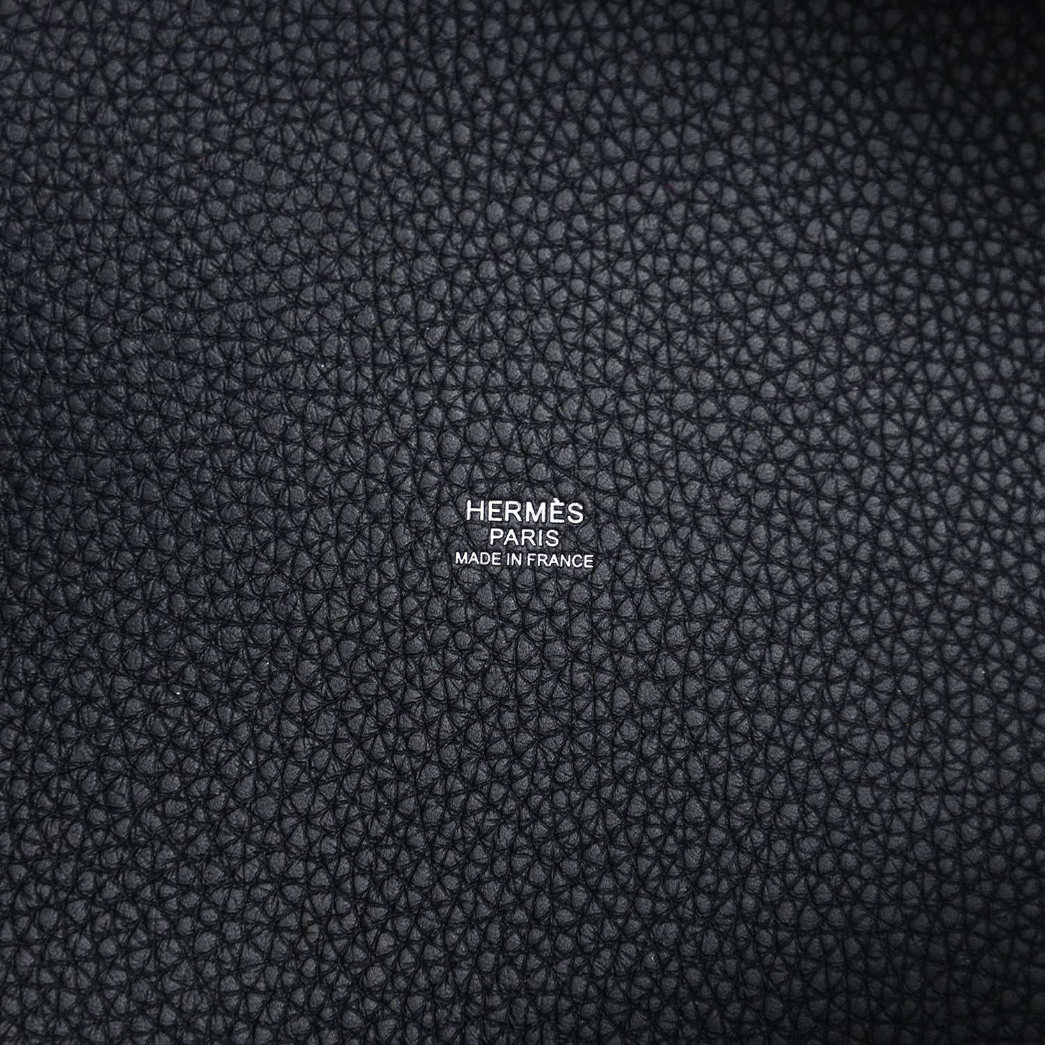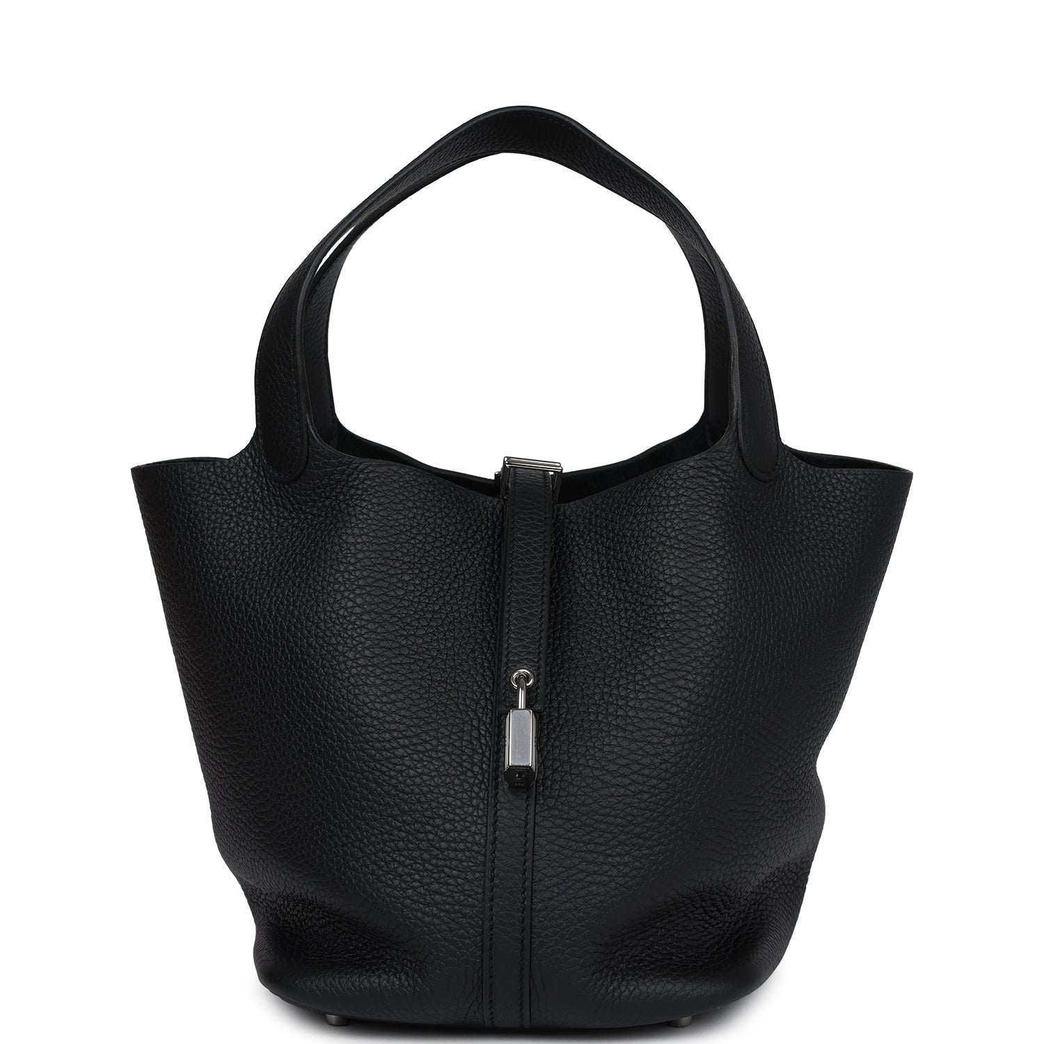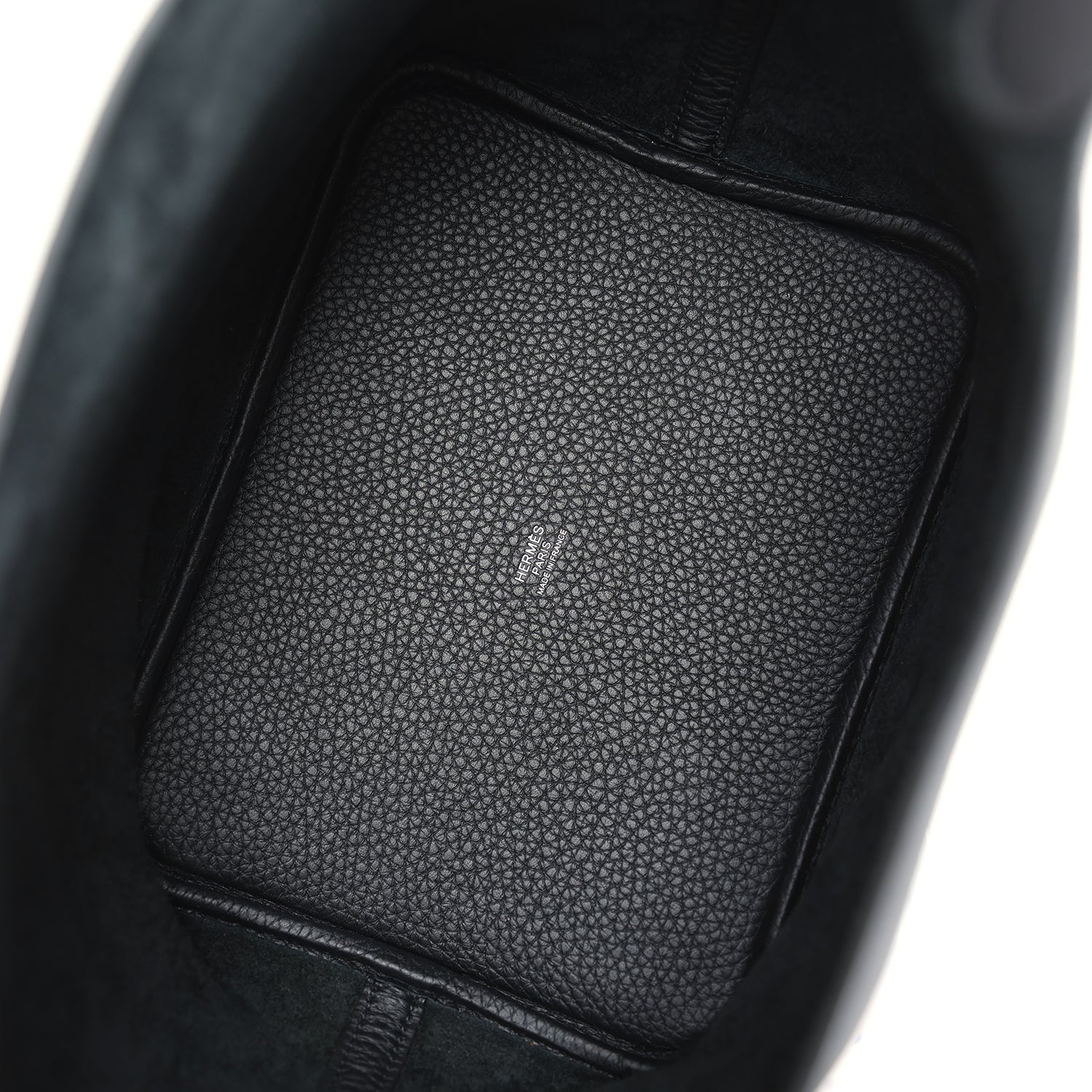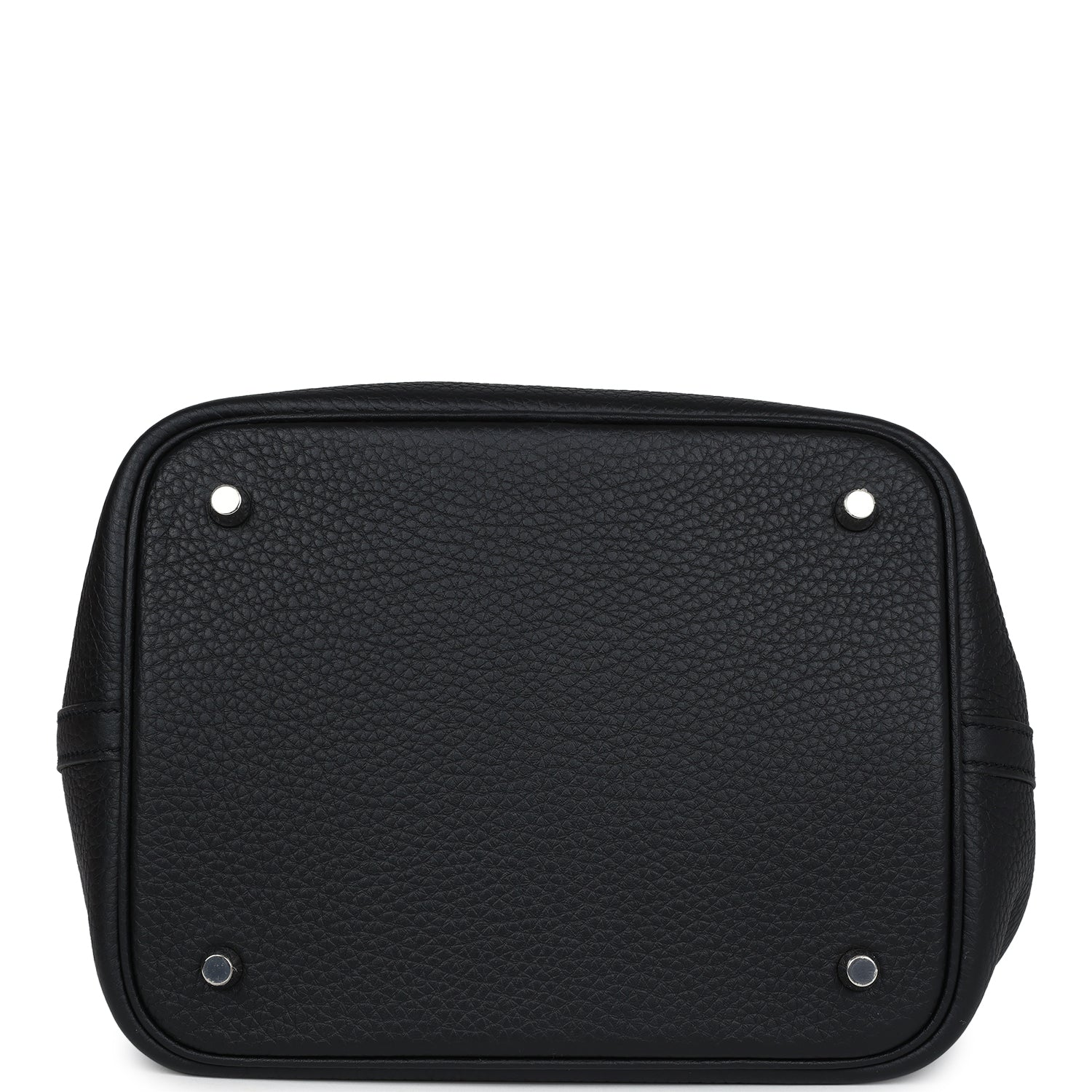 This Picotin Lock 22 is in Black clemence leather with palladium hardware and has tonal stitching with two top handles.