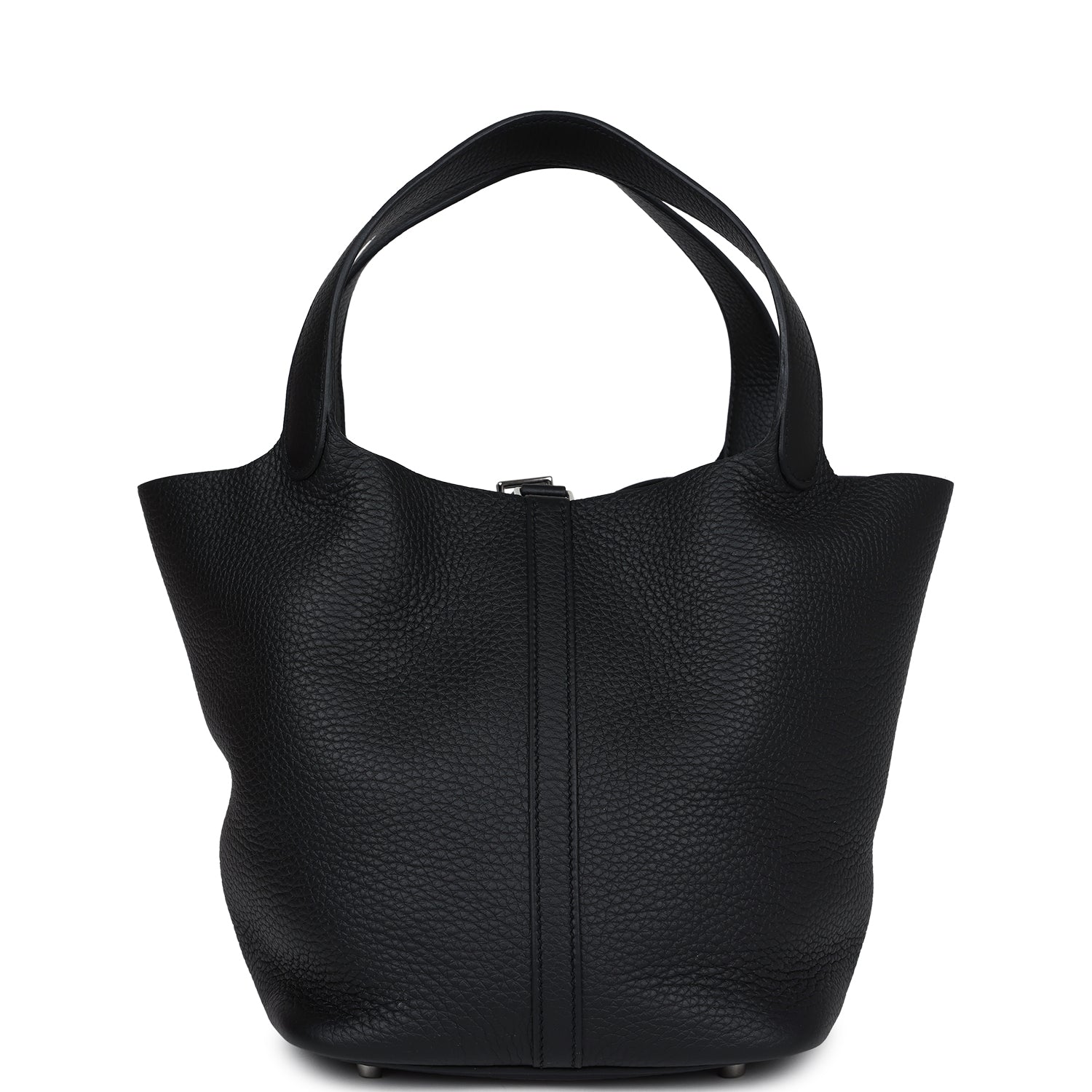 This Picotin Lock 22 is in Black clemence leather with palladium hardware and has tonal stitching with two top handles.