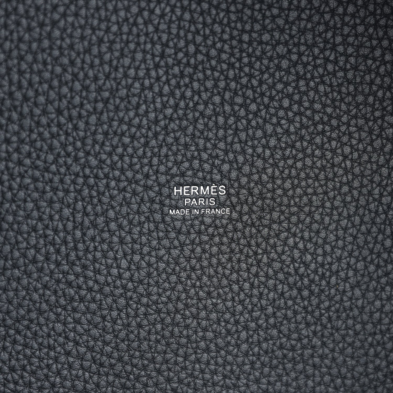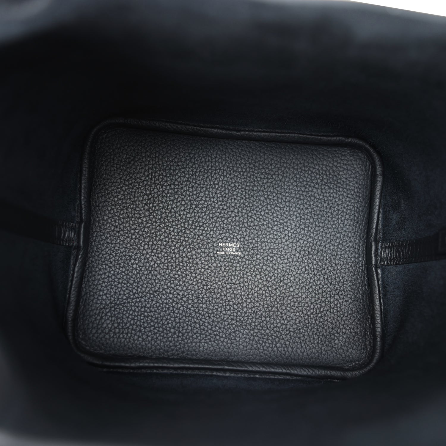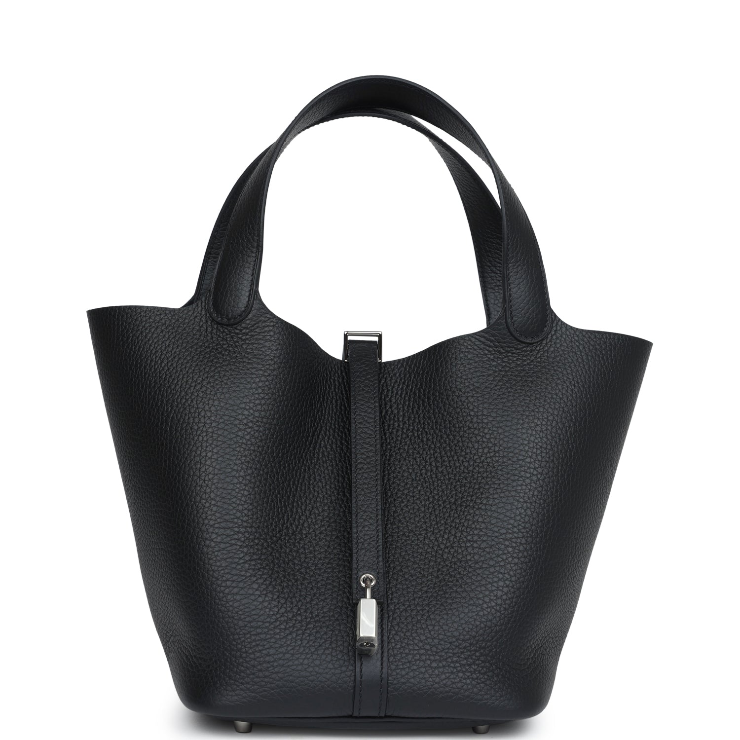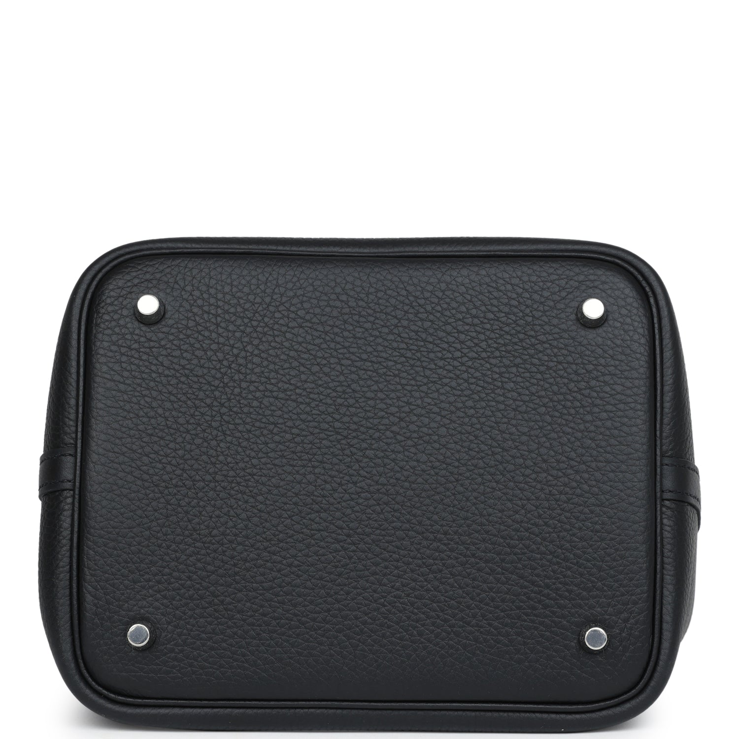 This Picotin Lock 22 is in Black clemence leather with palladium hardware and has tonal stitching with two top handles.