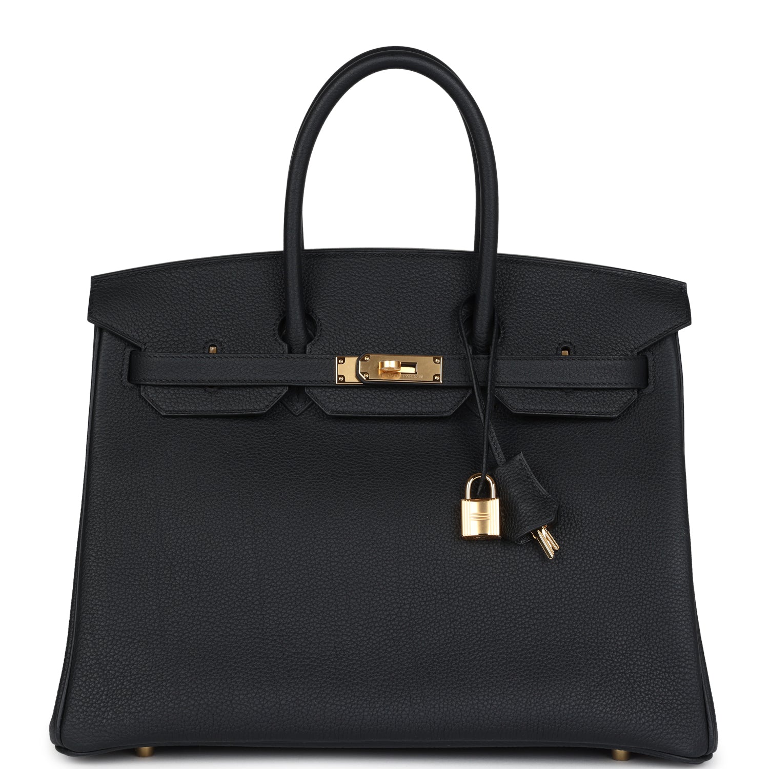 This Special Order Birkin is in Black Togo leather with gold hardware and has tonal stitching, front flap, two straps with center toggle closure, clochette with lock and two keys, and double rolled handles.