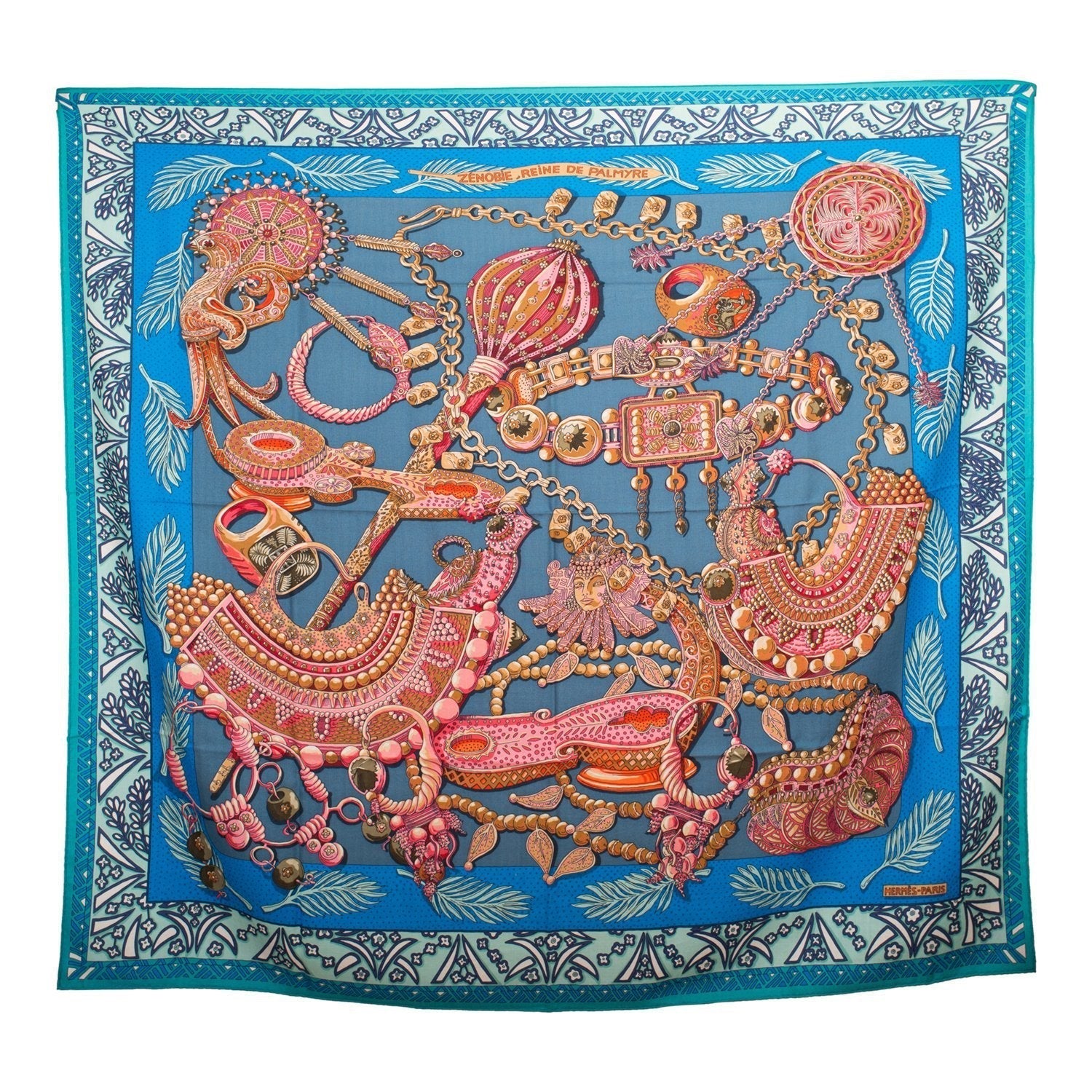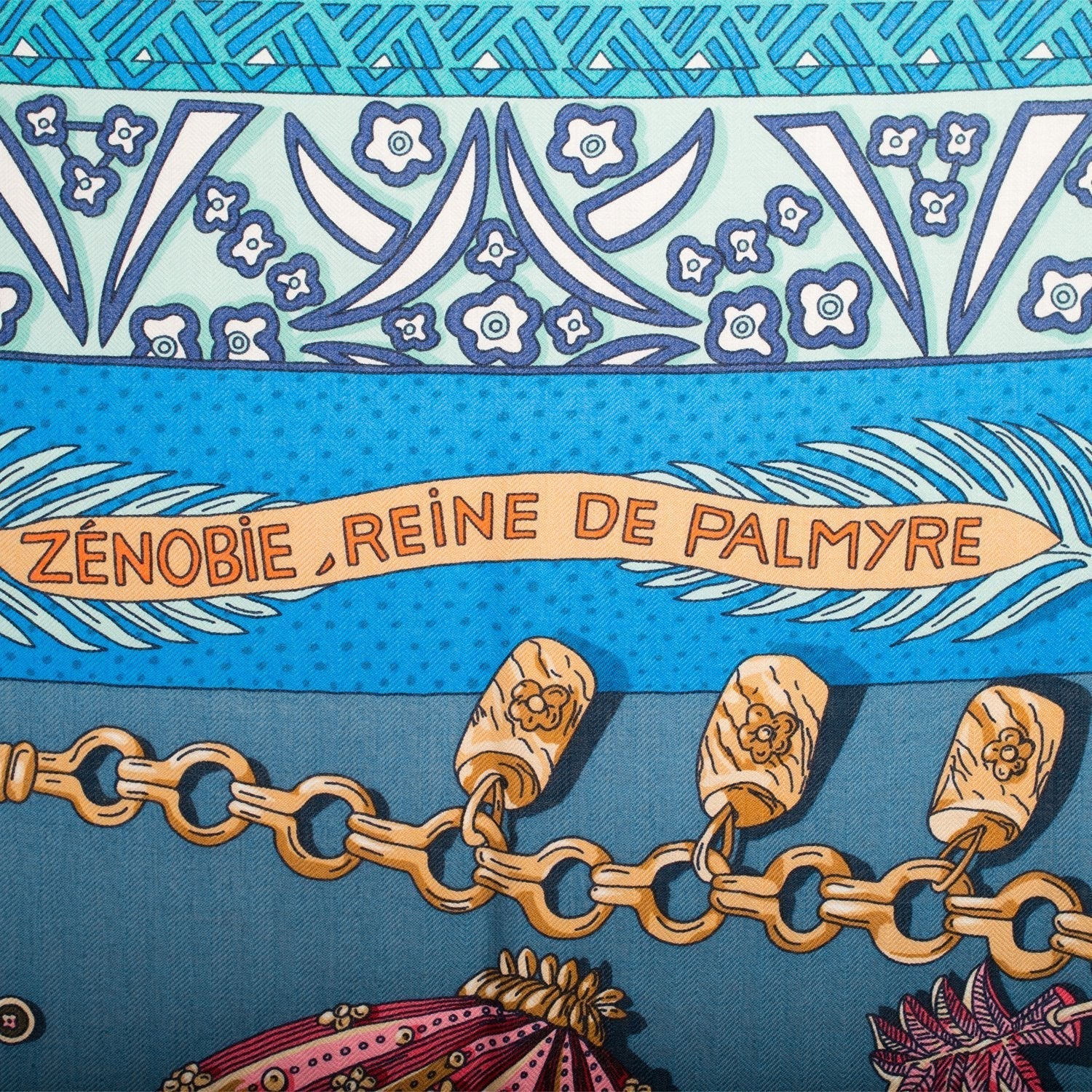Hermes "Zenobie, Reine de Palmyre" Turquoise Cashmere and Silk Shawl 140cm