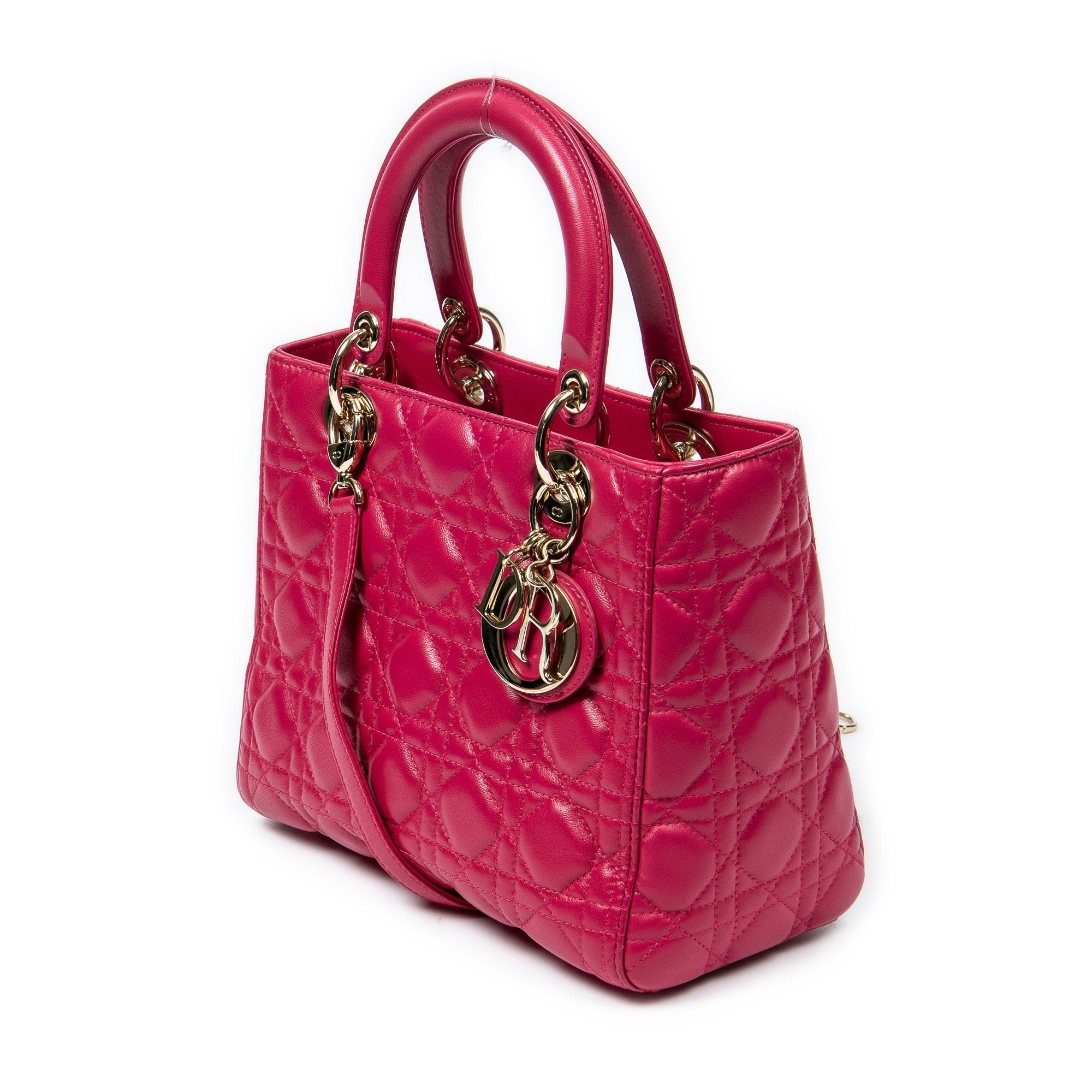 Dior Shoulder Bag Medium Lady Dior in Fuchsia Cannage Lambskin Leather and Silver hardware. The product is in Perfect Condition (AA). Dimension - 24*20*11cm SKU - AAX7776 Serial number - 18-MA-1114 Accessories Included - None Delivery - We have a 5 to 7 business days delivery policy, hassle-free and duties/tariffs included! BrandCo Paris finds rare and top condition items at great deals, they are worth your patience! Shop with confidence - All BrandCo Paris items are carefully selected and ated by our team of experts. All the items come with an and packaging delivered by BrandCo Paris. Item Condition Grading Table N (Like New) AA (Perfect Condition) A (Excellent Condition) AB (Very Good Condition) B (Good/Fair)