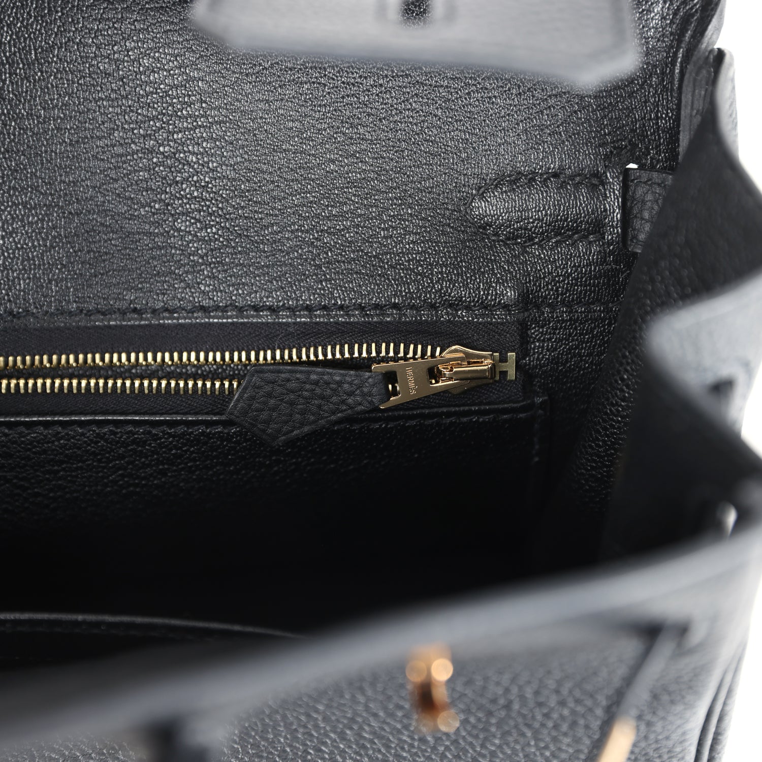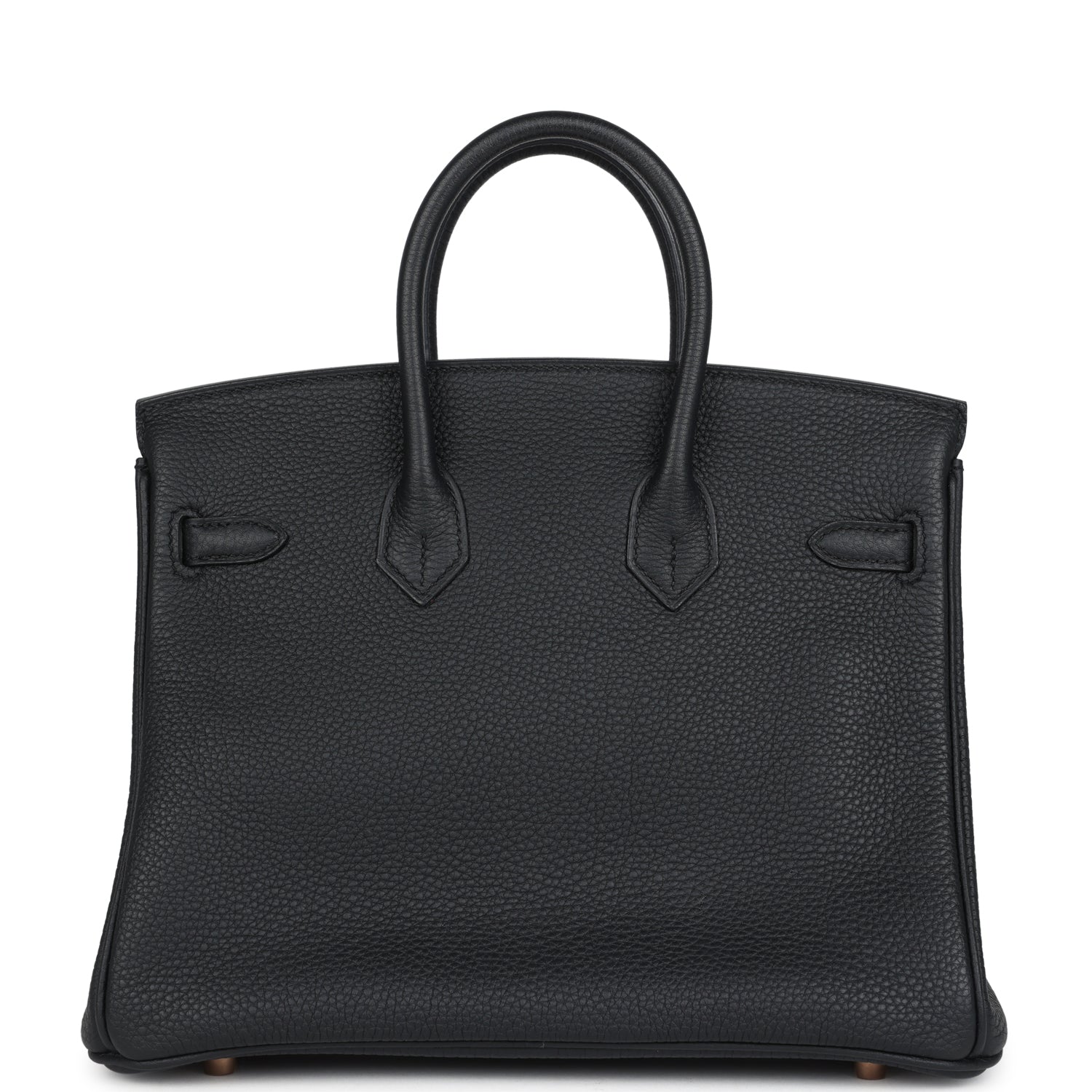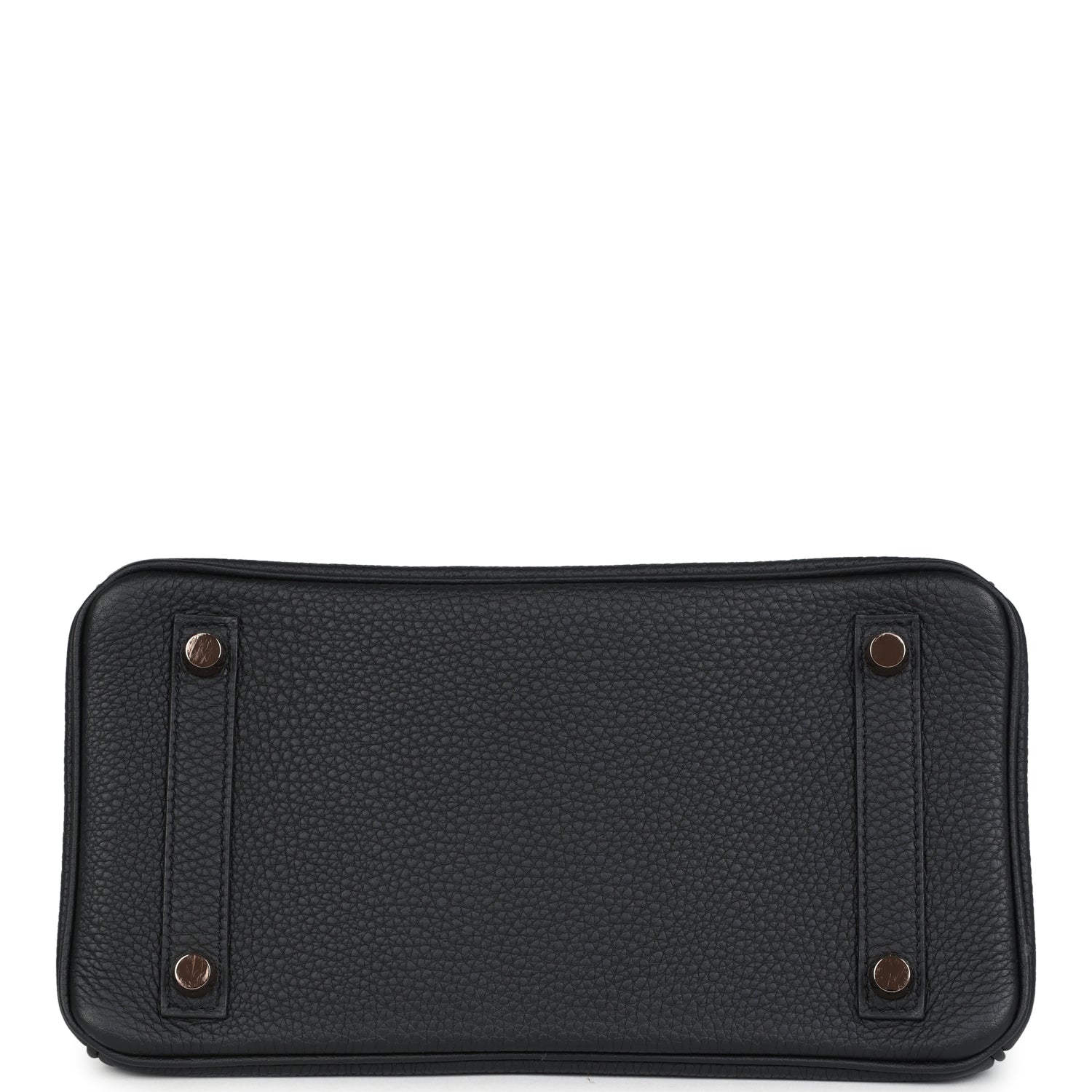 This Hermes Birkin is in Black togo leather with rose gold hardware tonal stitching, front flap with two straps, front toggle closure, clochette with lock and two keys, and double rolled handles.