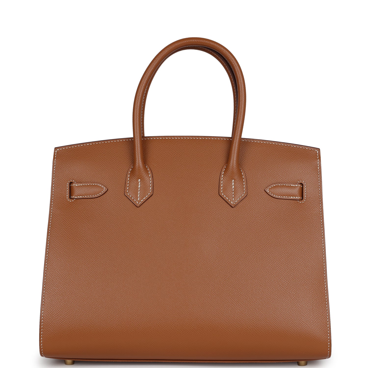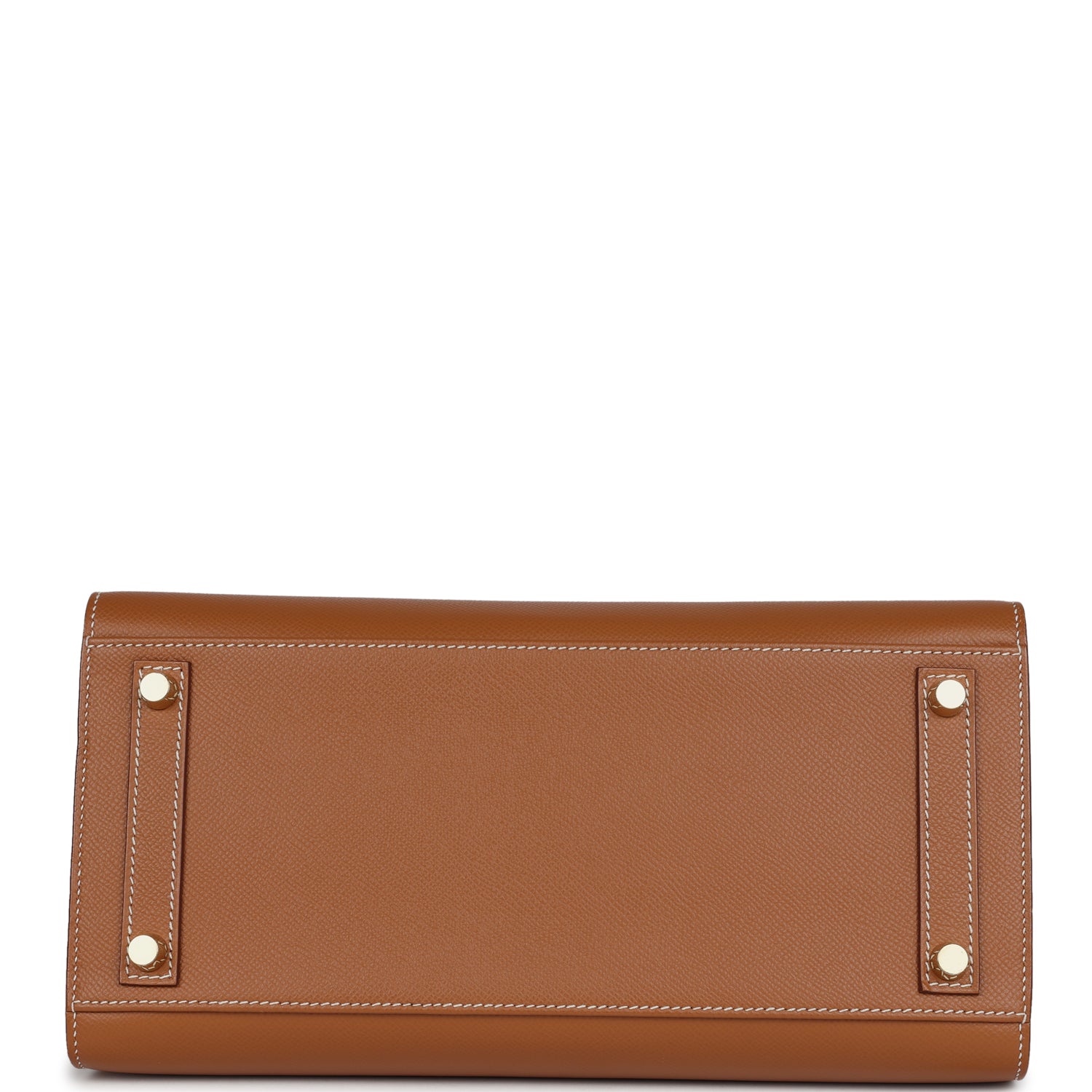 This Birkin is in Gold epsom leather with gold hardware and has contrast stitching, front flap, two straps with center toggle closure, clochette with lock and two keys, and double rolled handles.