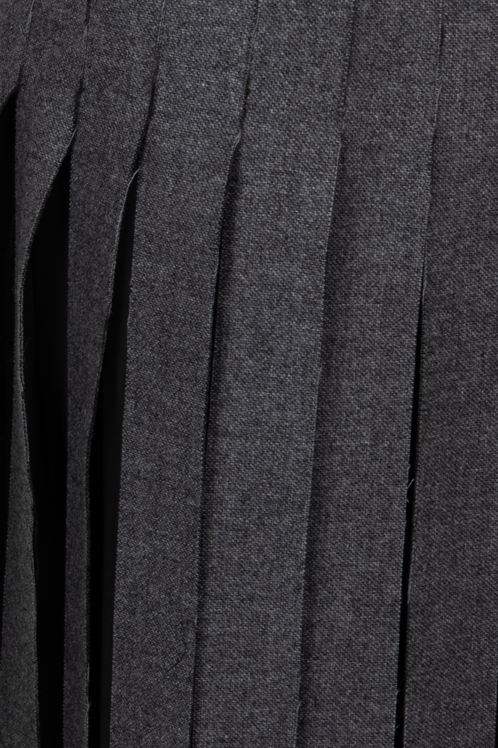 Der Prada 2020 Fringed Wool Midi Skirt in Grau – ein echtes Statement-Piece. Der elegante Wollstoff kombiniert mit auffälligen Fransen verleiht diesem Rock eine besondere Dynamik. Perfekt für mutige Styles, lässt sich der Rock sowohl lässig als auch elegant kombinieren. Ein dazugehöriger Unterrock in Schwarz sorgt für zusätzlichen Komfort und eine schmeichelhafte Silhouette.