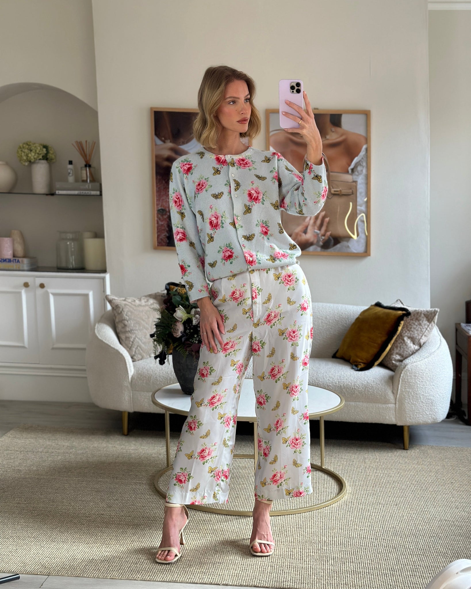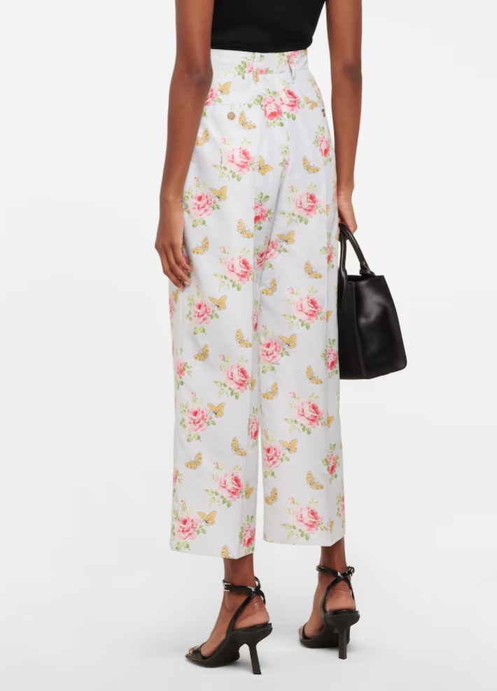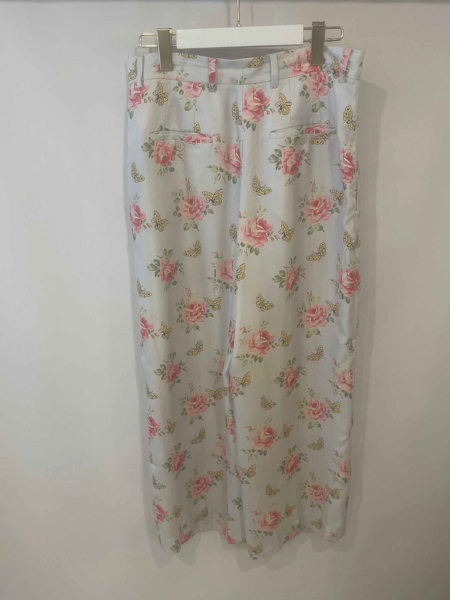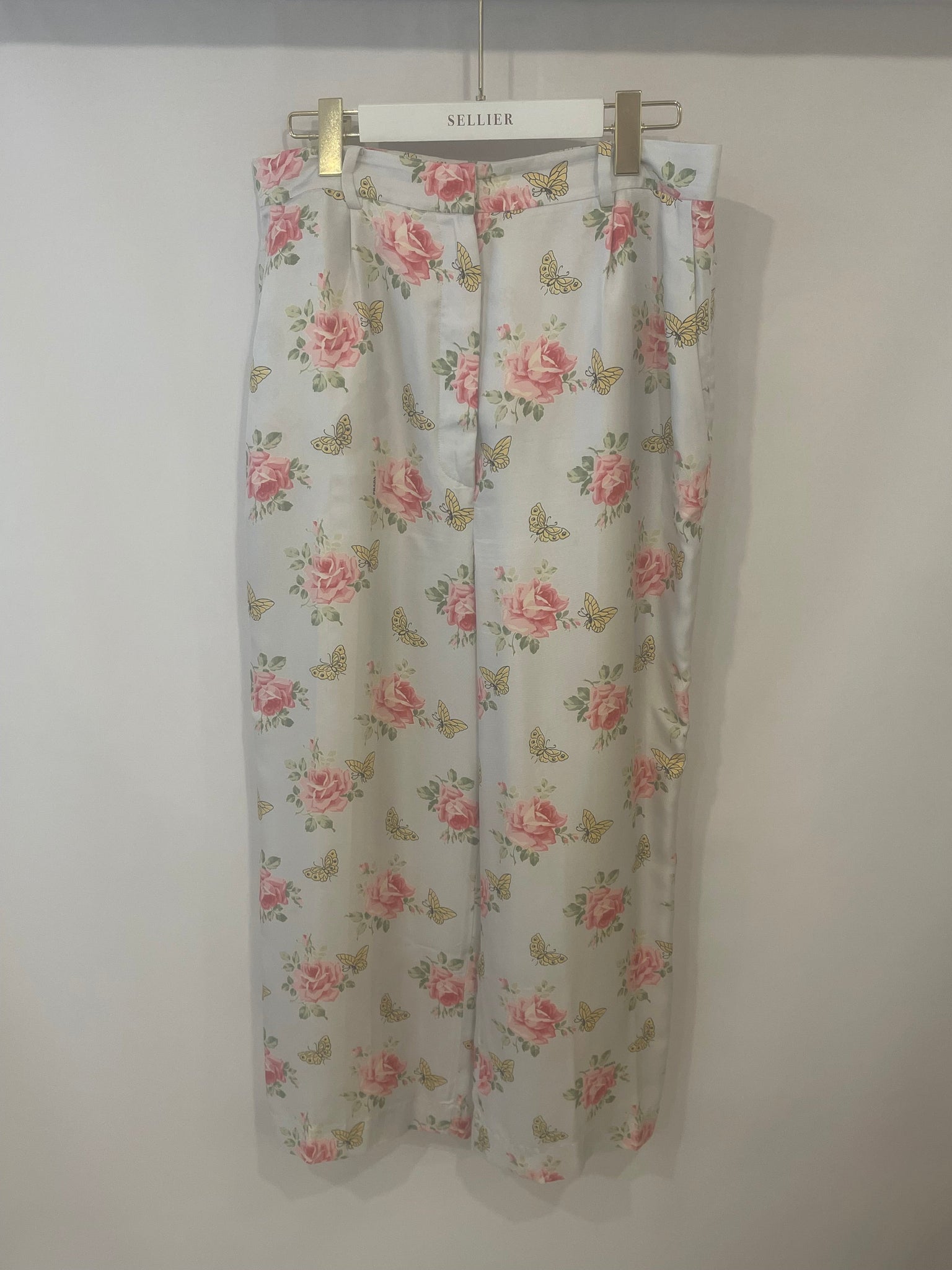 Prada Baby Blue Silk Floral High-Rise Pants Size IT 44 (UK 12)