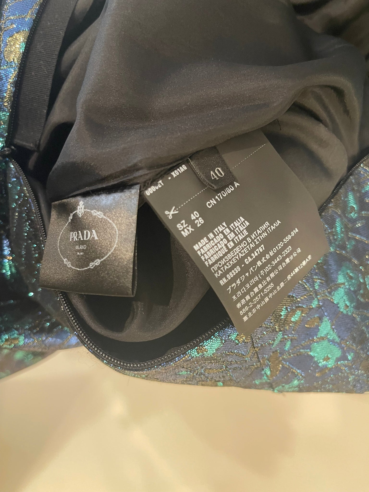Prada Blue & Green Metallic Sleeveless Midi Dress with Floral Prints Size IT 40 (UK 8)