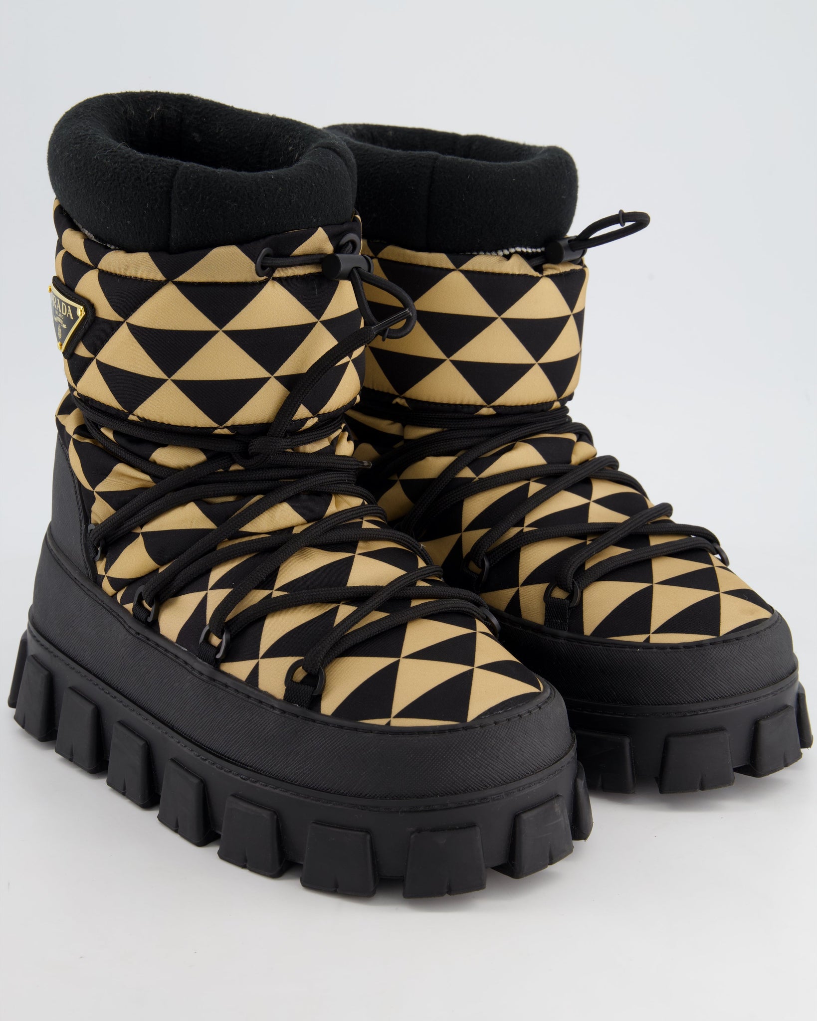 Prada Brown & Black Triangle Logo Padded Apres-Ski Boots Size EU 39/40