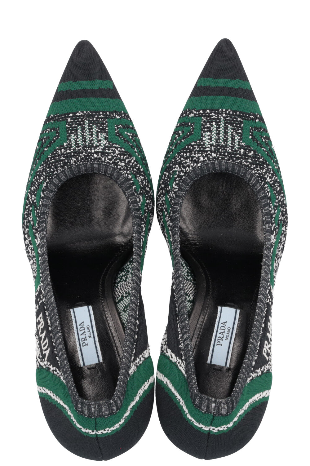 Die klassische Silhouette kombiniert mit dem modernen Prada Primeknit verleihen diesen Heels einen ein einzigartigen look. Ob zu schwarzen Stoffhosen oder einem eleganten Rock, mit diesen Schuhen ist dein Outfit immer komplett.