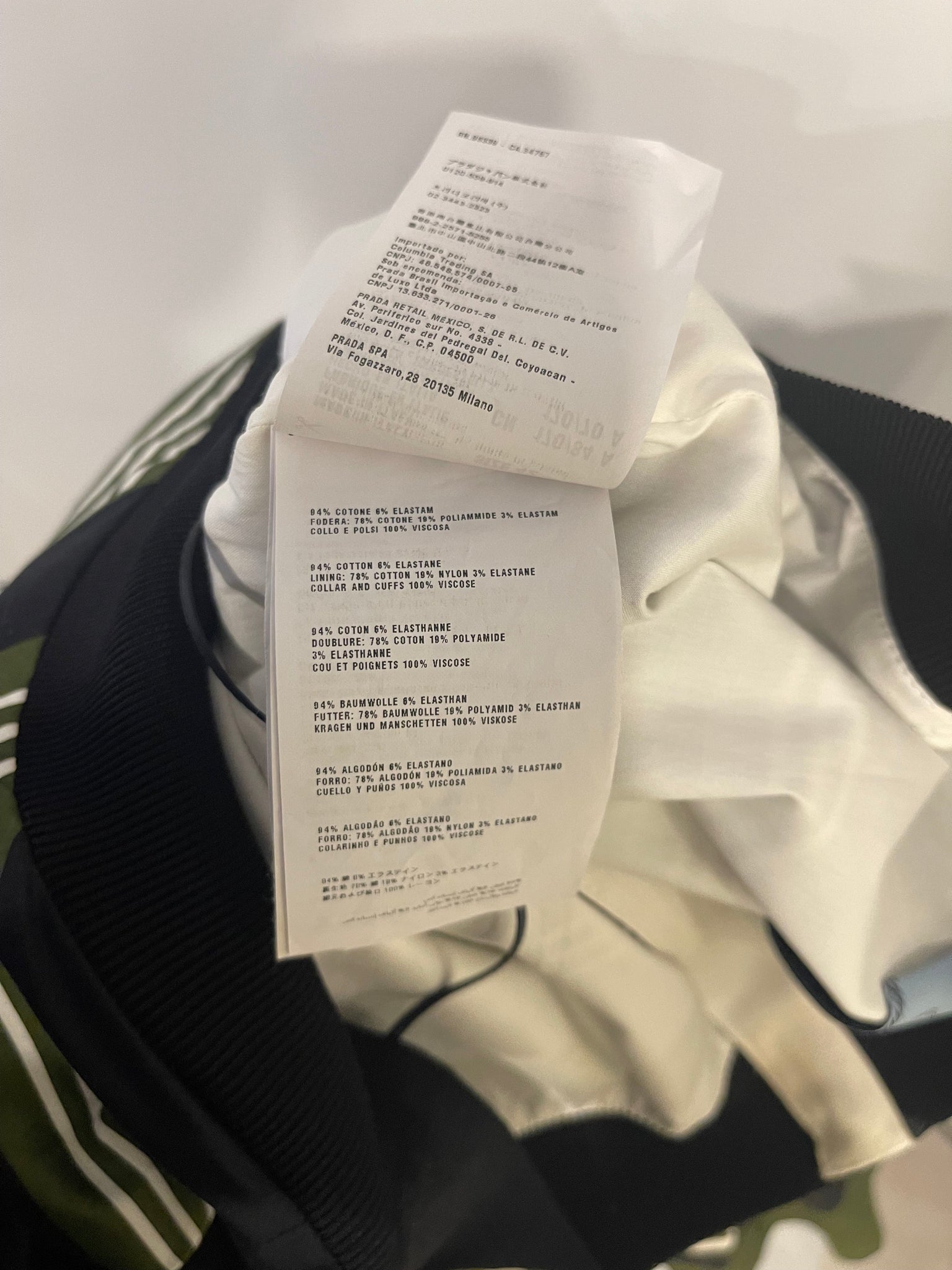 Prada Khaki, Navy & White Striped Mid-Sleeve Off-Shoulder Dress Size IT 40 (UK 8)