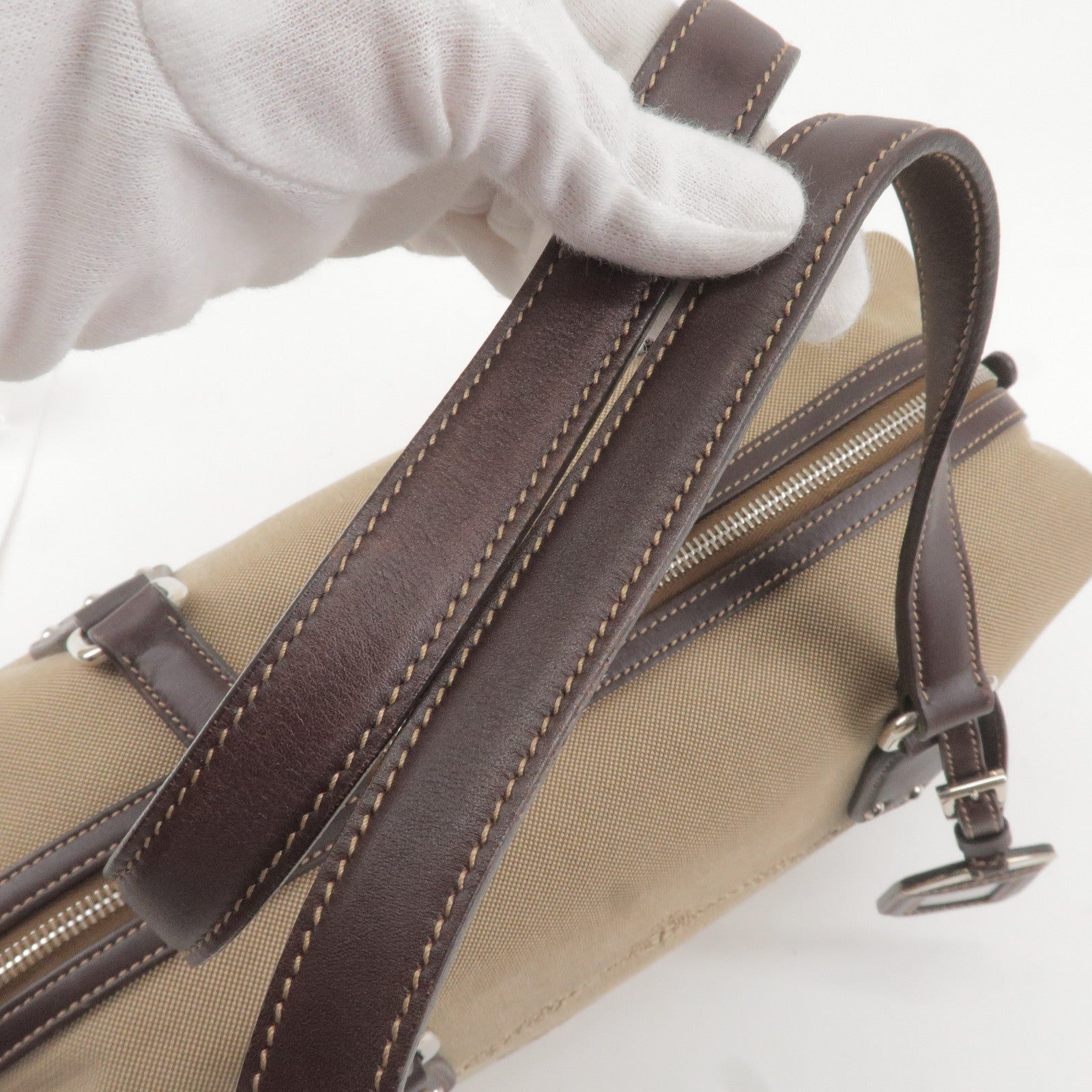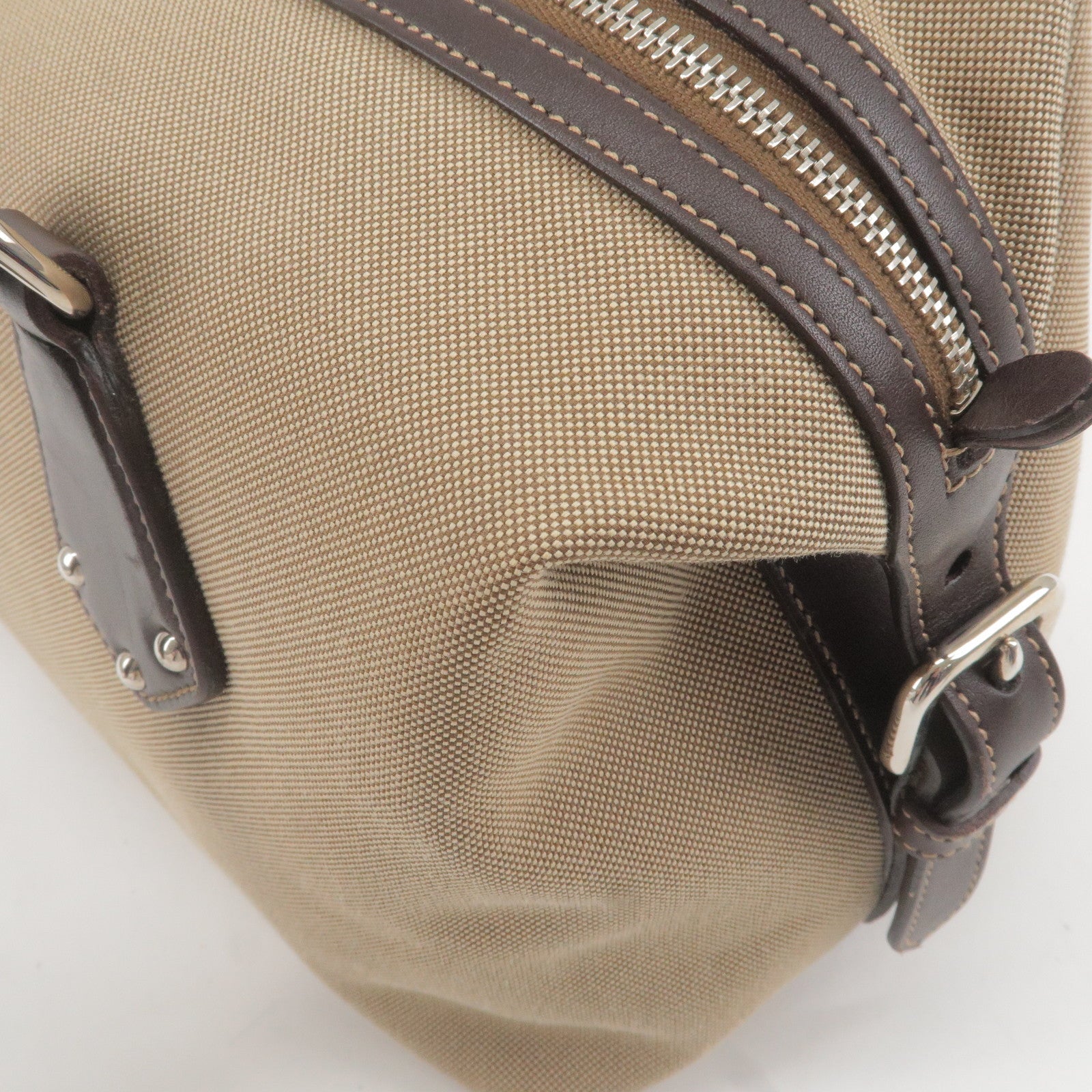 (Remarks) peelings on leather parts, cracks on handle, on side leather buckle,