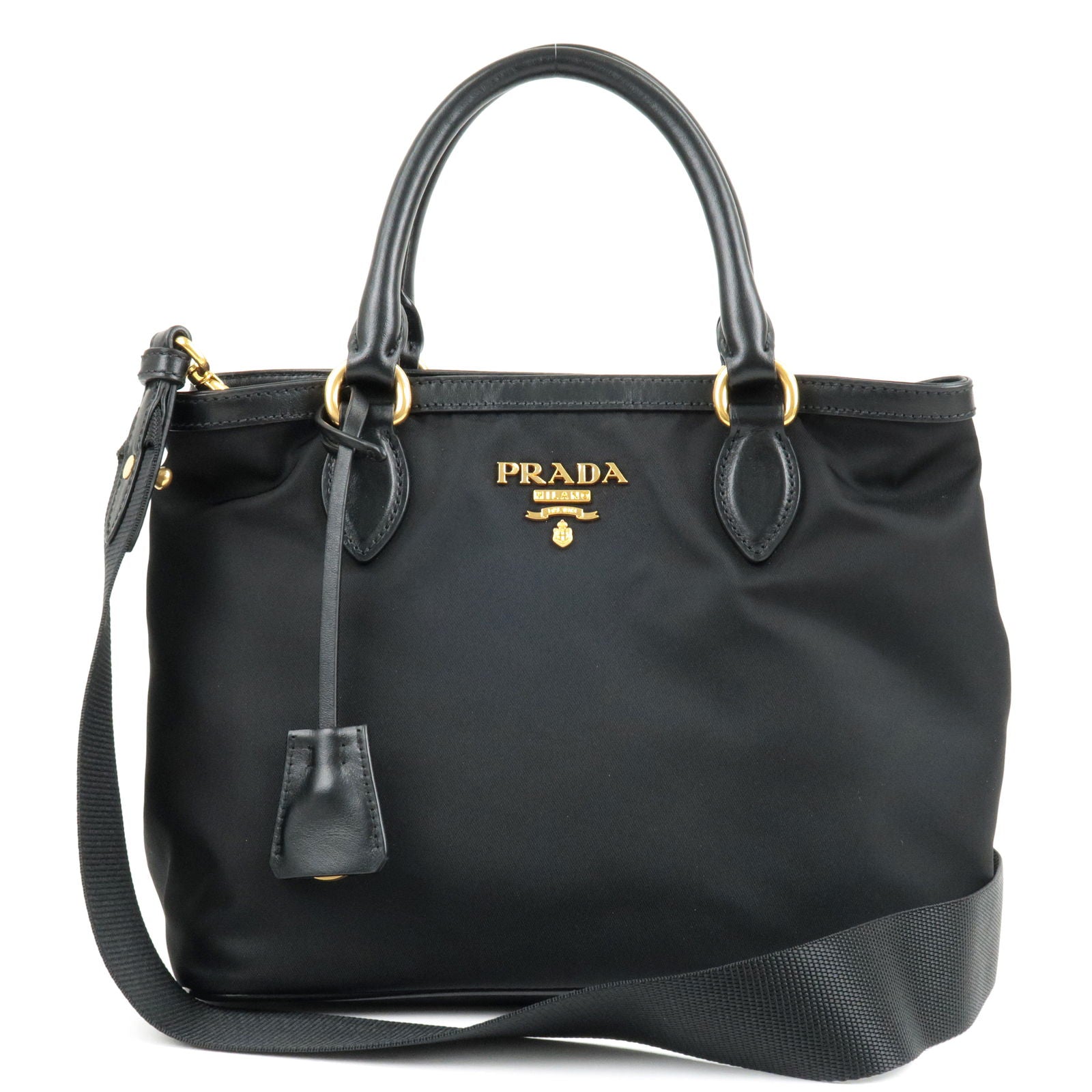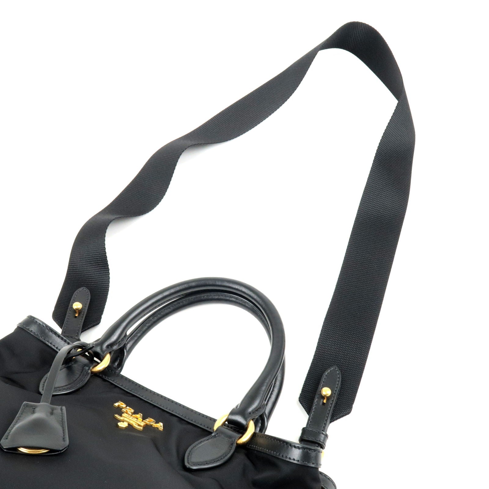 Prada Logo Nylon Leather 2Way Bag Hand Bag Black NERO 1BA172