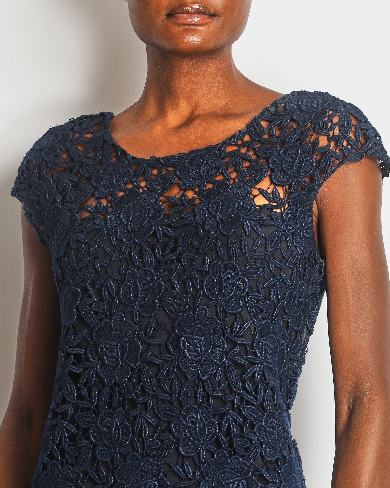 Prada Navy Short-Sleeve Crochet Mini Dress Size IT 44 (UK 12)