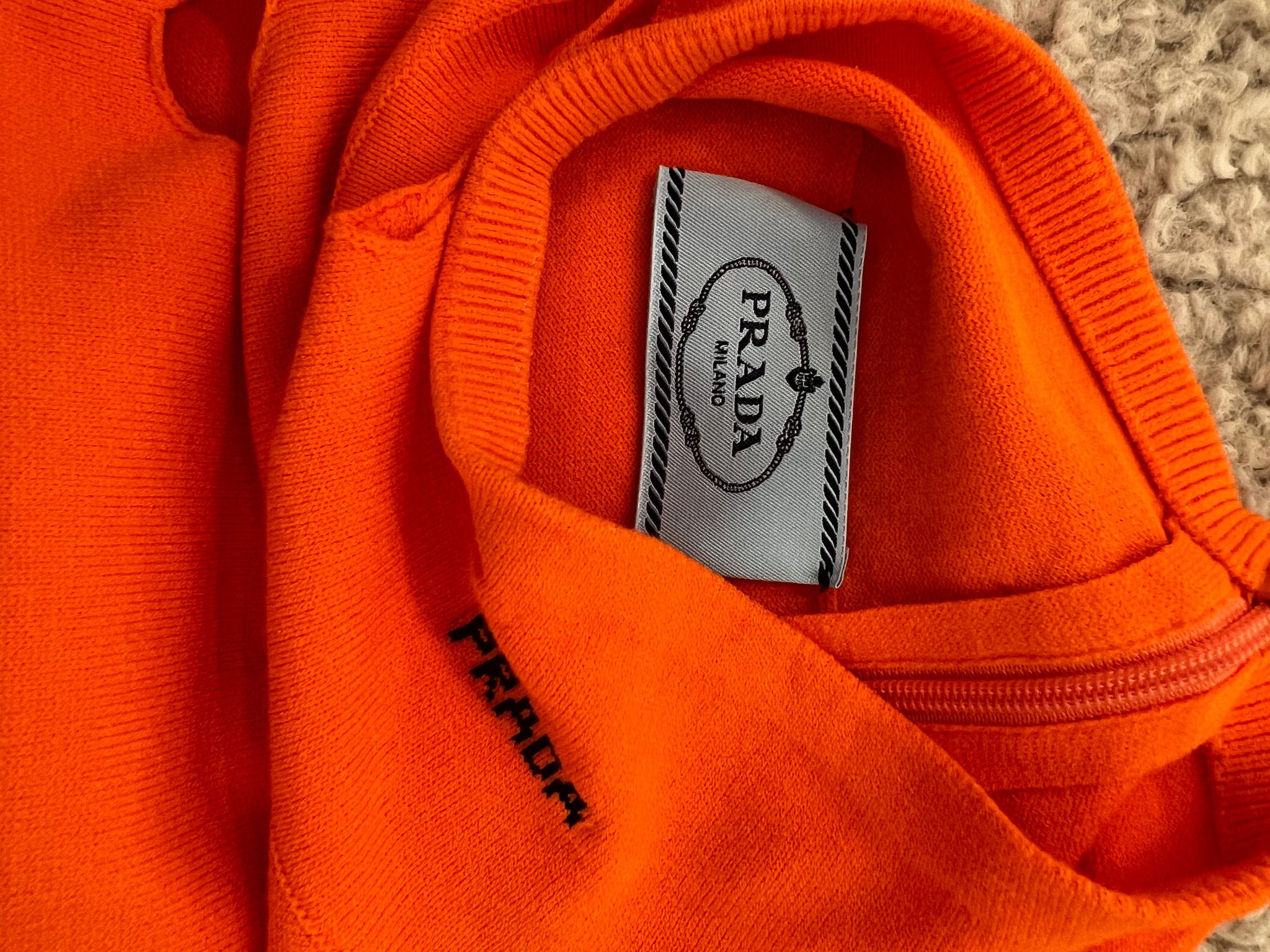 Prada Orange Wool Knit Cut-Out Jumper with Black Logo Detail Size IT 48 (UK 16)