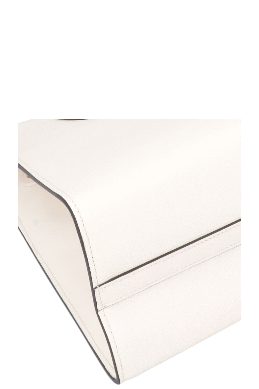 Gefertigt aus dem ikonischen, strapazierfähigen Saffiano-Leder, punktet die Tasche mit minimalistischen Linien und einer klaren weissen Farbe. Das kompakte Design machen sie vielseitig einsetzbar – vom Stadtbummel bis zum Dinner.