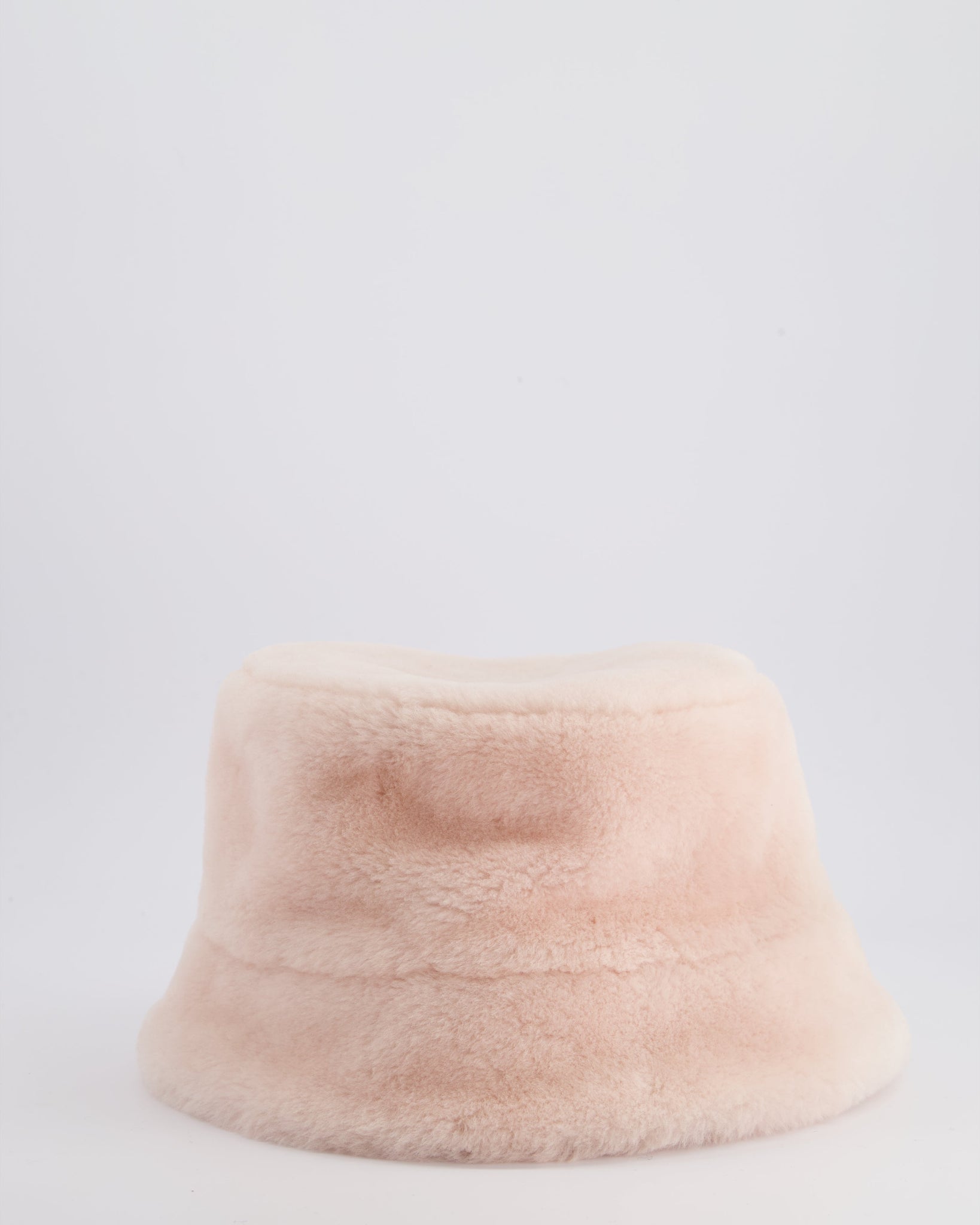 Prada Pink Shearling Bucket Hat with Logo Size L