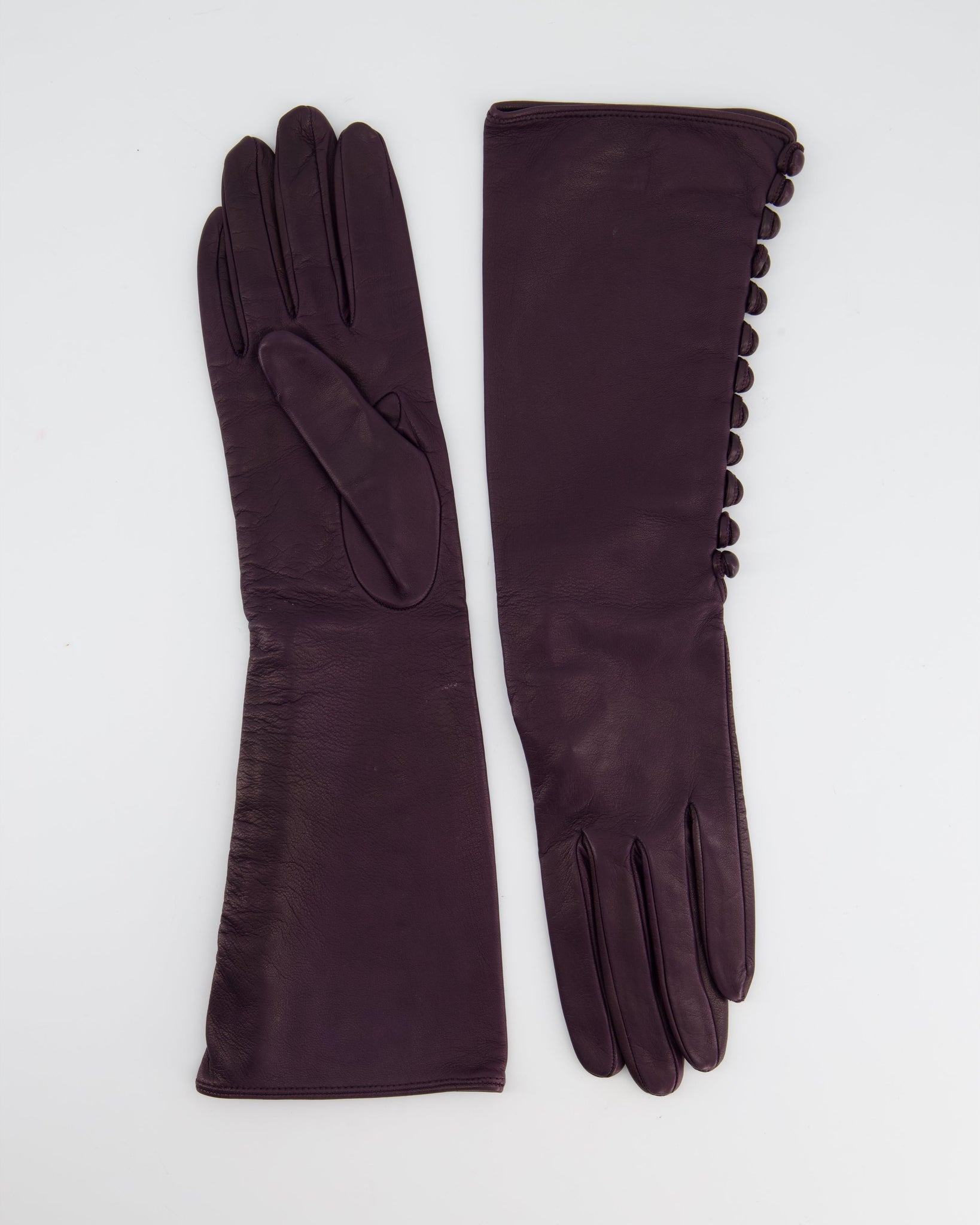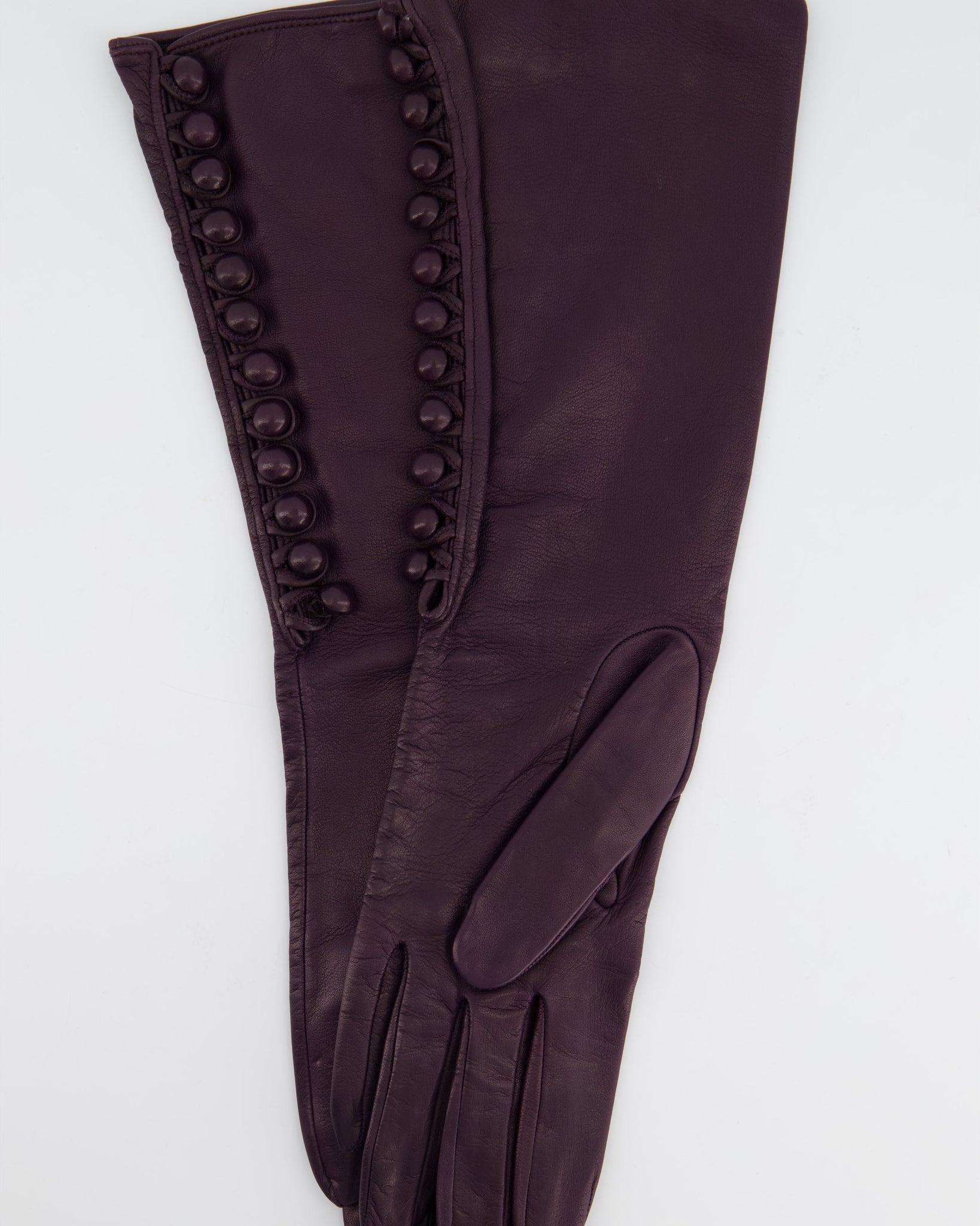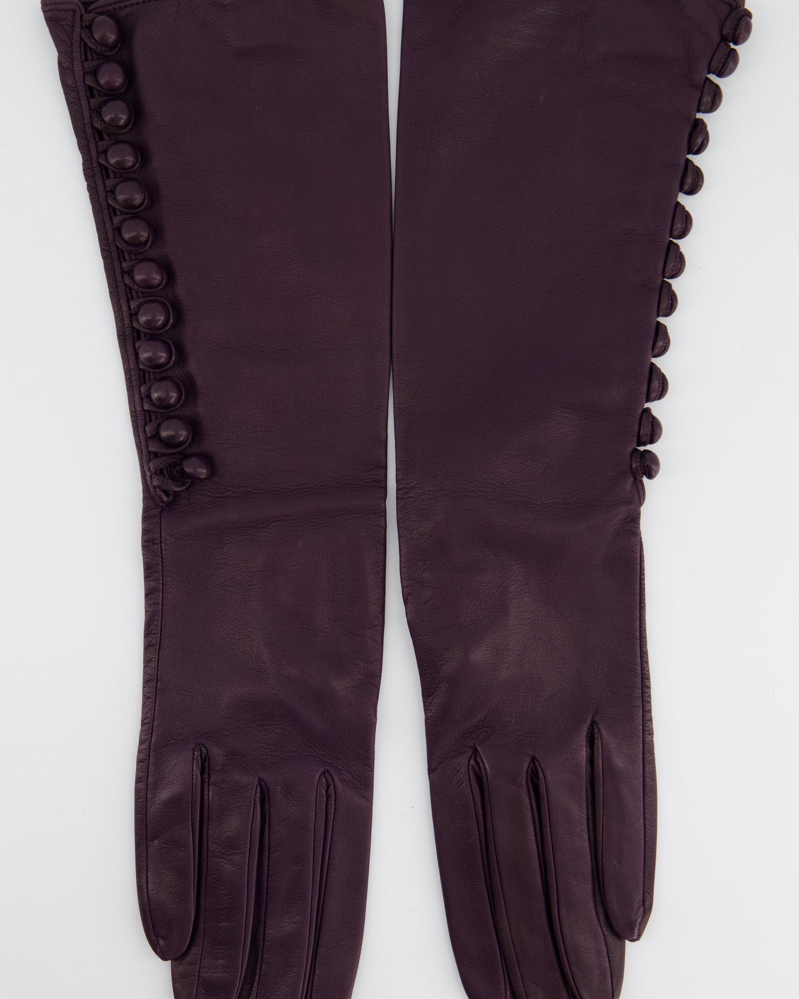 Prada Plum Purple Long Gloves in Lambskin Leather and Buttons Detail Size 7