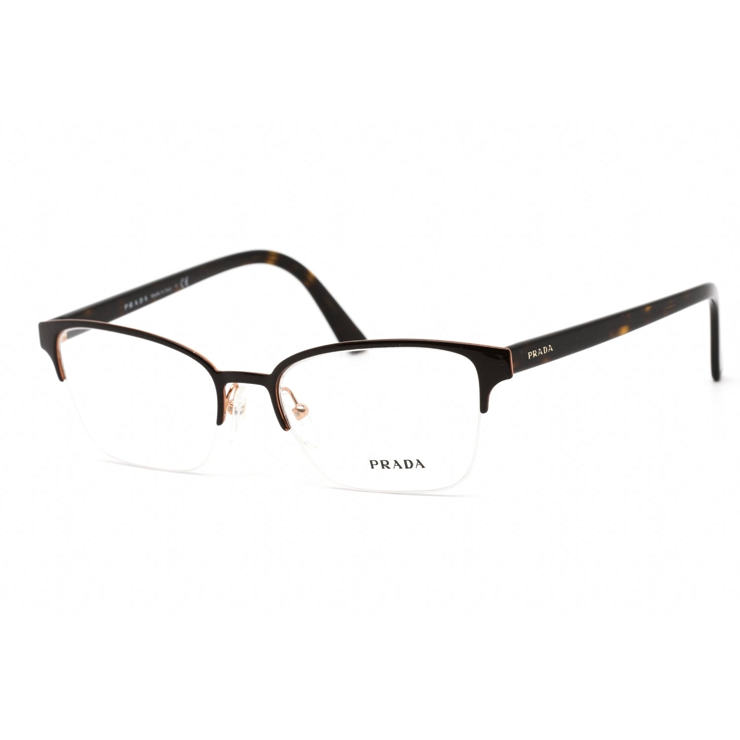 Prada PR 61XV Eyeglasses Top Brown Rose Gold/Clear demo lens