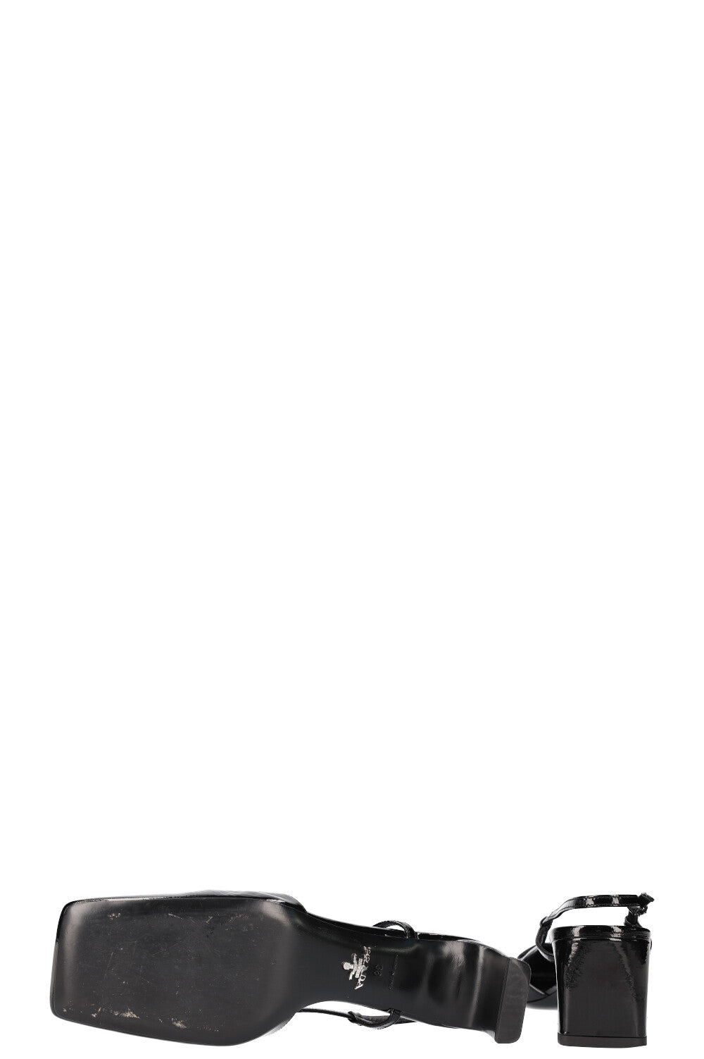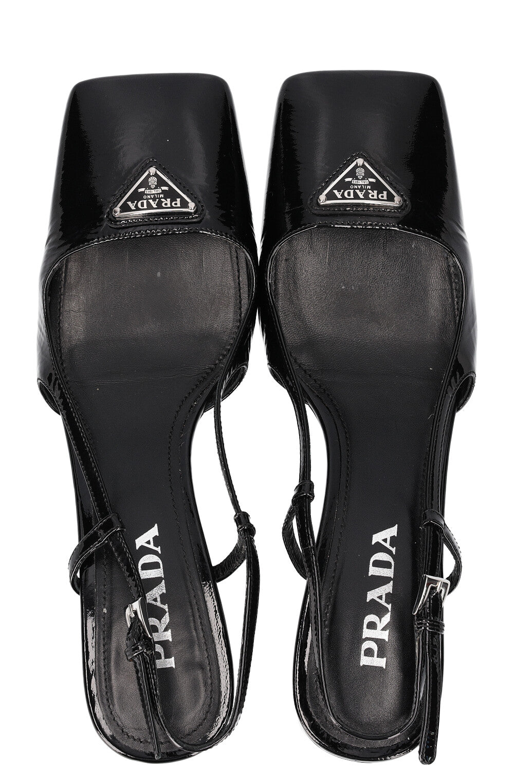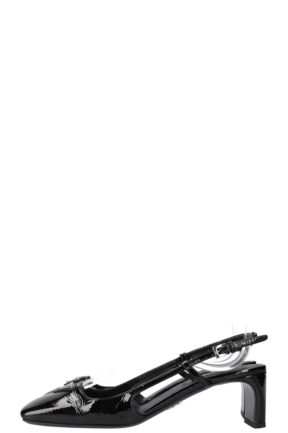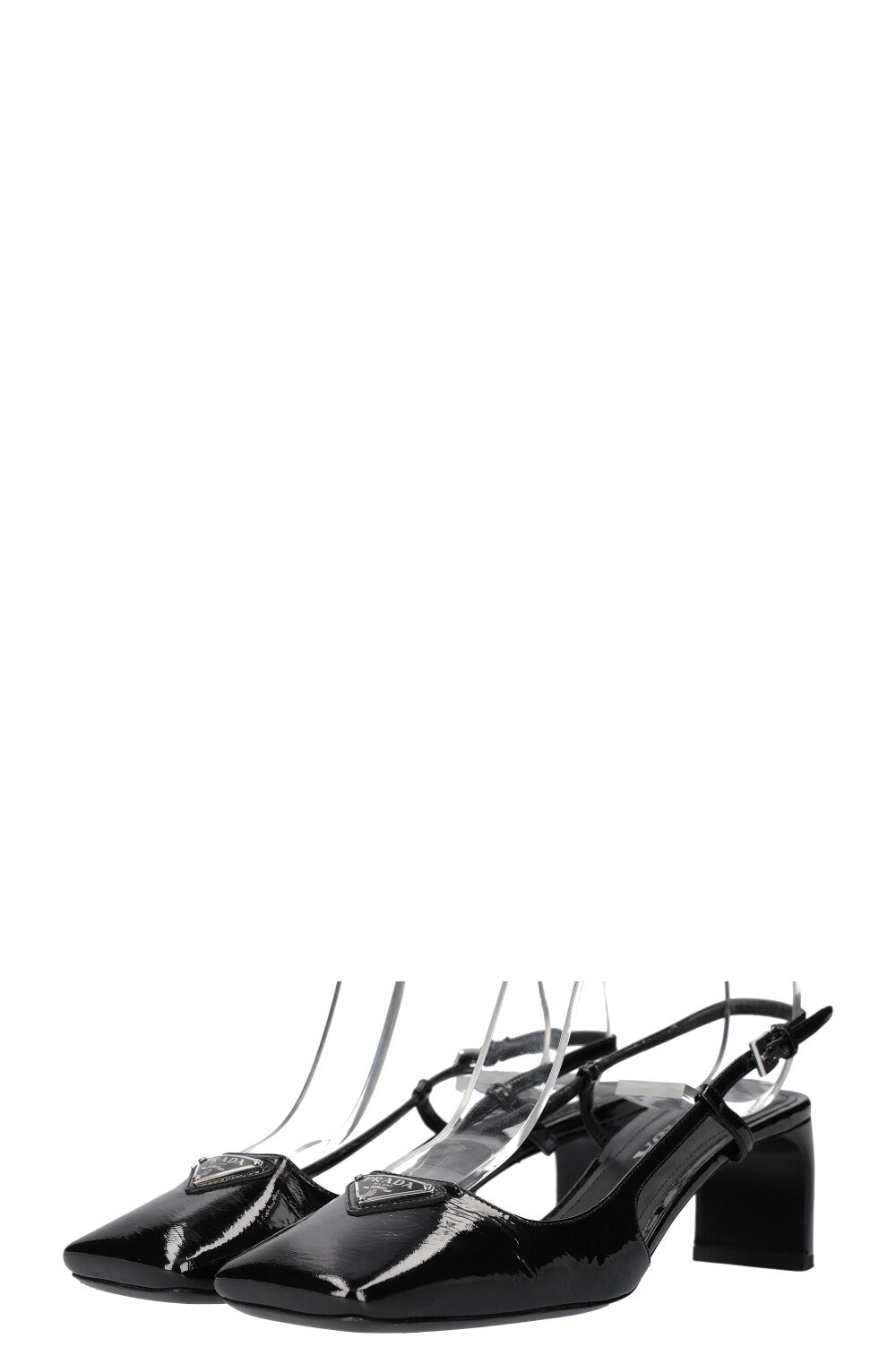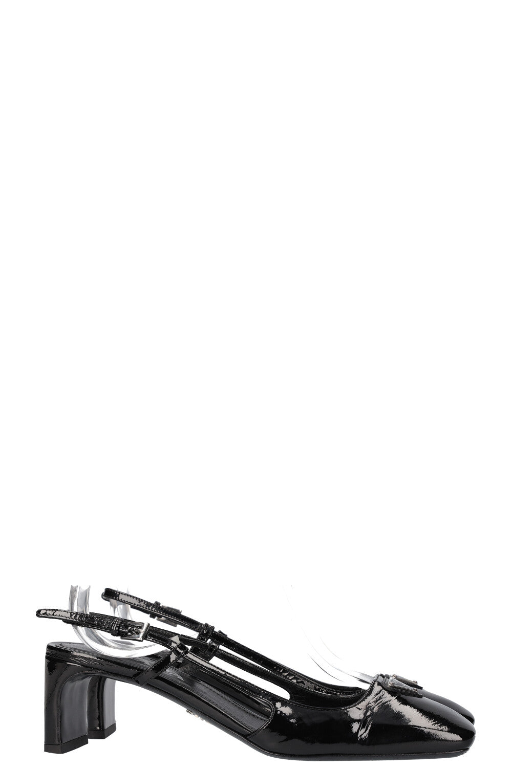We love: Edgy Prada Pumps aus Lackleder. Mit ikonischer Plakette an der Vorderseiten