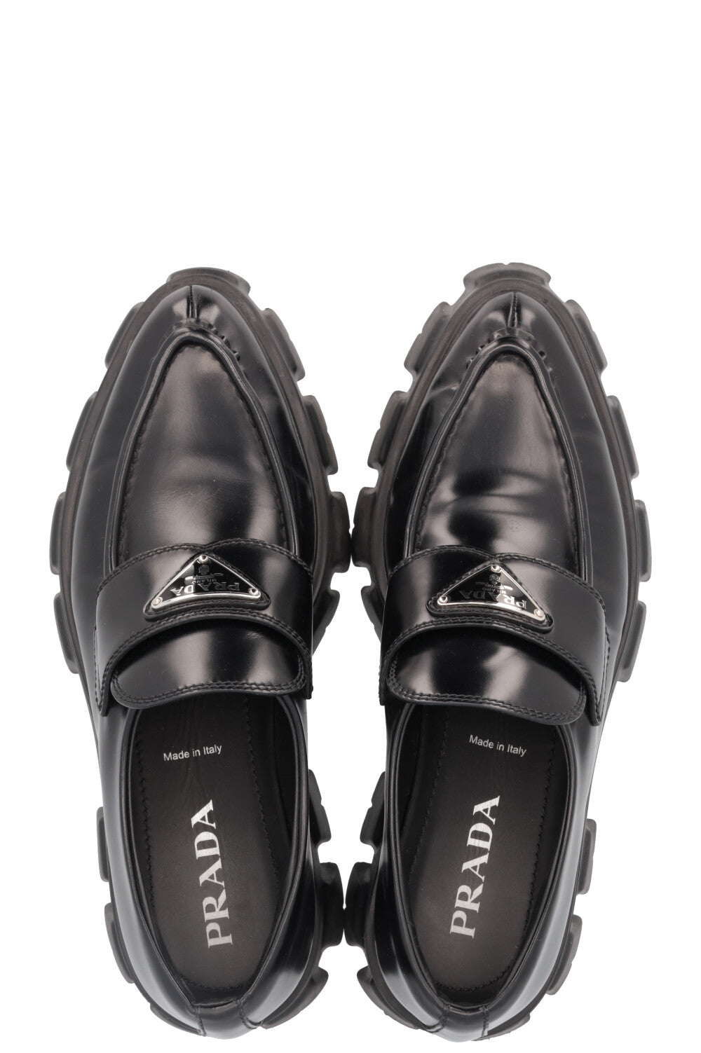 We Love: Die Monolith-Loafer aus Pradas ikonischem und elegantem gebürstetem Leder interpretieren den klassischen Pennyloafer auf originelle und zeitgemässe Weise neu.