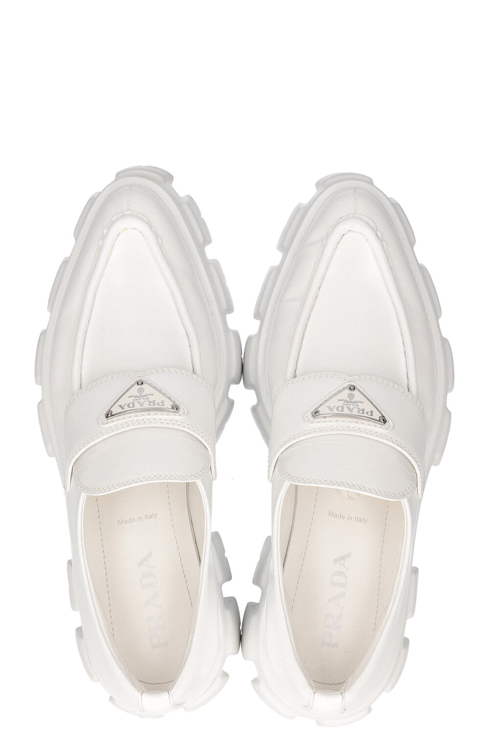 We Love: Die Monolith Kreationen stehen für die Dualität der Ästhetik des Hauses. Ein klassisches Loafer Design mit einer modernen und markanten Sohle - und natürlich ikonischer Prada Plakette. Ein Must Have für alle Prada Enthusiasten.
