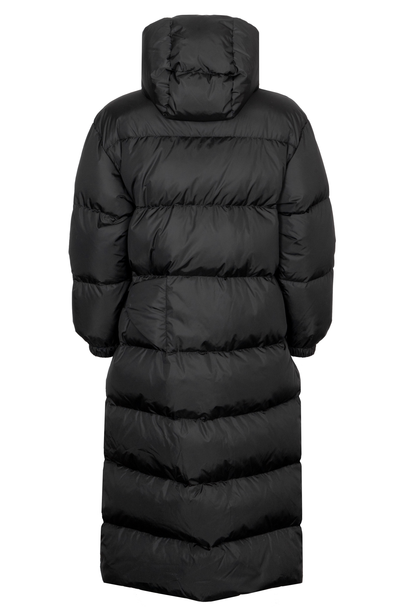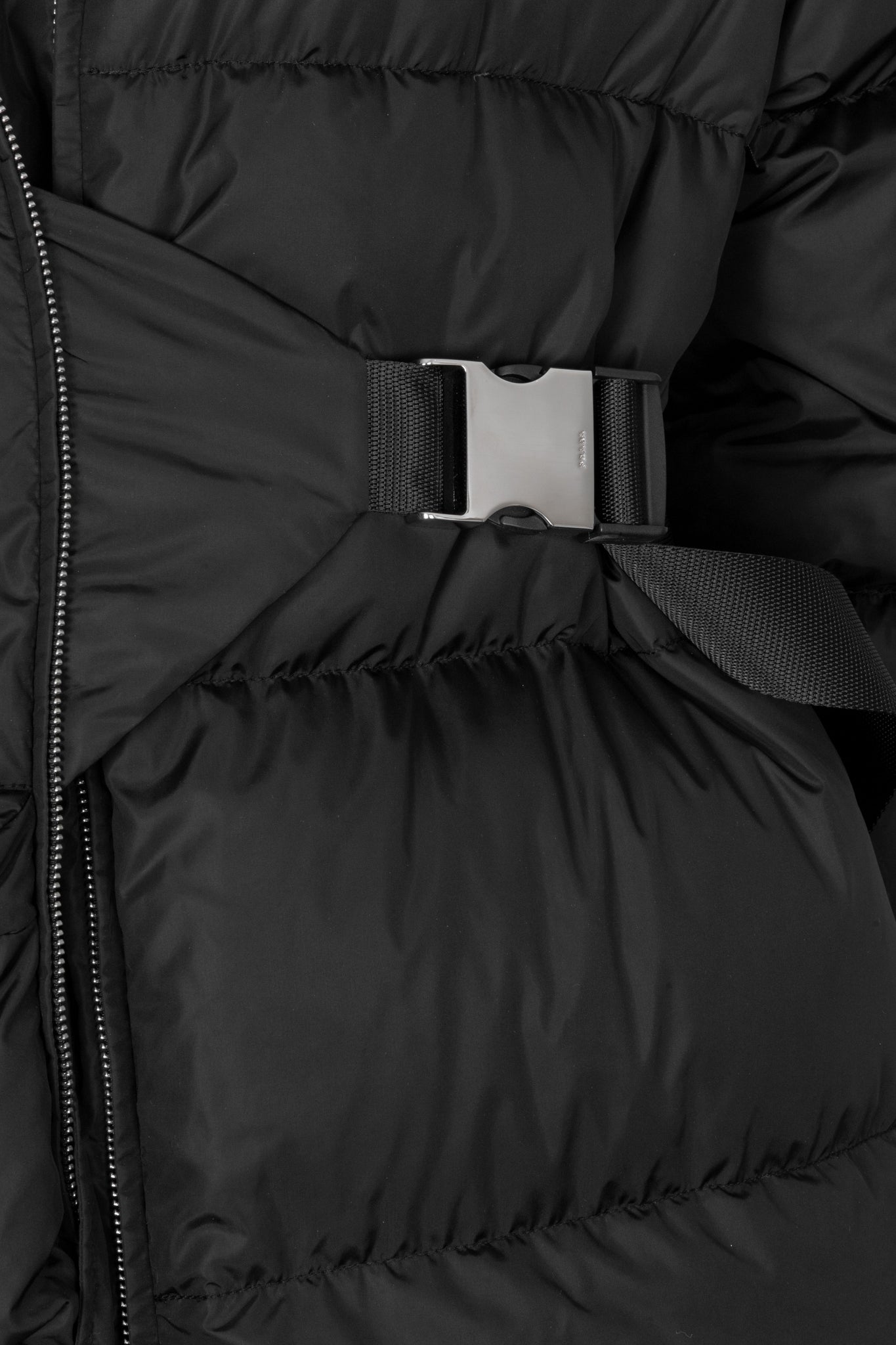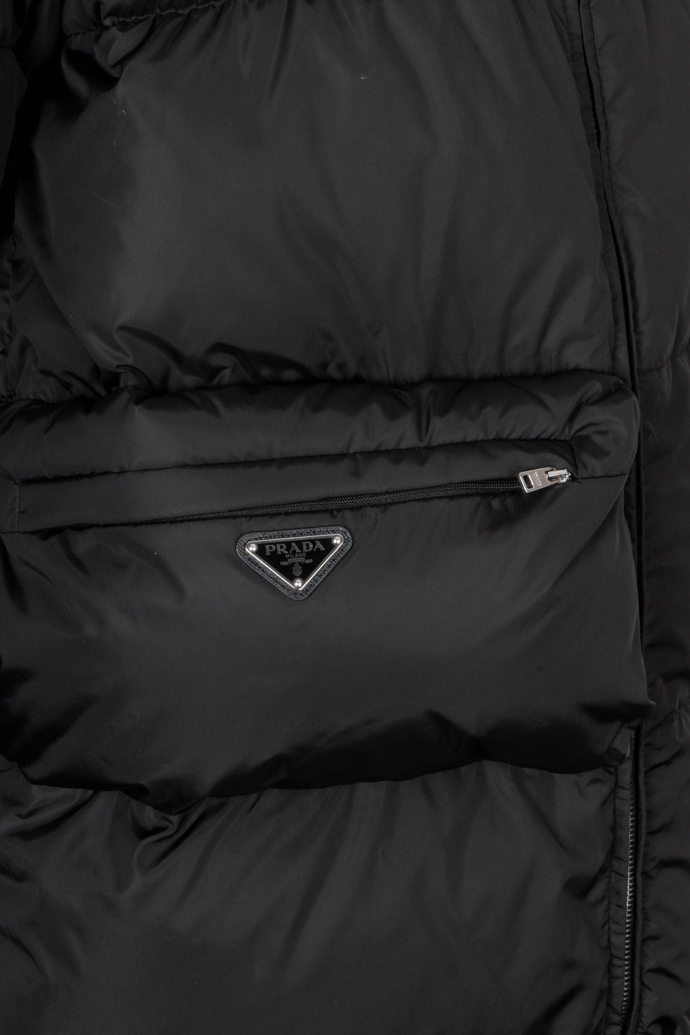 Der Prada Re-Nylon Down Coat in Schwarz ist ein riesiger, superkuscheliger Mantel, der mit seiner voluminösen Daunenfüllung besonders warm hält und auch an kalten Tagen maximalen Komfort bietet. Das hochwertige Re-Nylon-Material steht für Pradas Nachhaltigkeitsanspruch, und das integrierte NFC-Tag ermöglicht es dir, alles über die Herkunft und das Design zu erfahren. Ein stilvolles Statement-Piece für Wintertage, das dich gemütlich und schick zugleich hält!