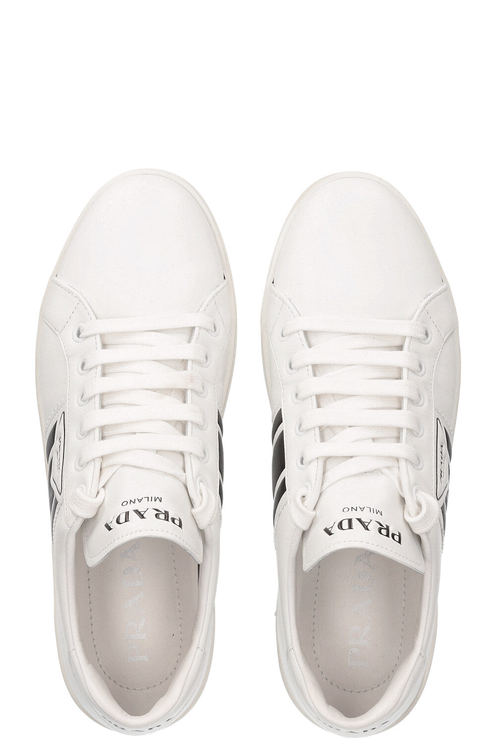Aussen: Leichte Gebrauchsspuren im Leder der Sneakers