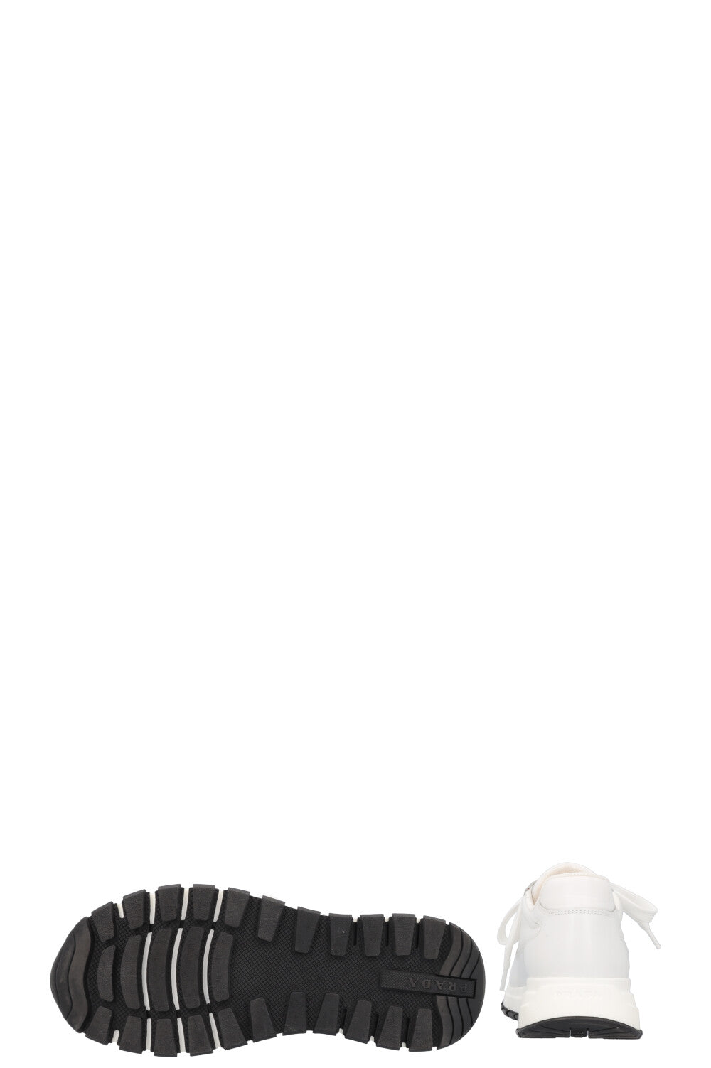 Sportlich, stylisch und Nachhaltig: Diese weissen Sneakers aus Prada Re-Nylon und Leder vereinen modernes Design mit einem klaren Statement für umweltbewusste Mode. Mit dem ikonischen Prada-Logo und einer zeitgemässen Silhouette sind sie die perfekte Wahl für entspannte Looks mit Stil.