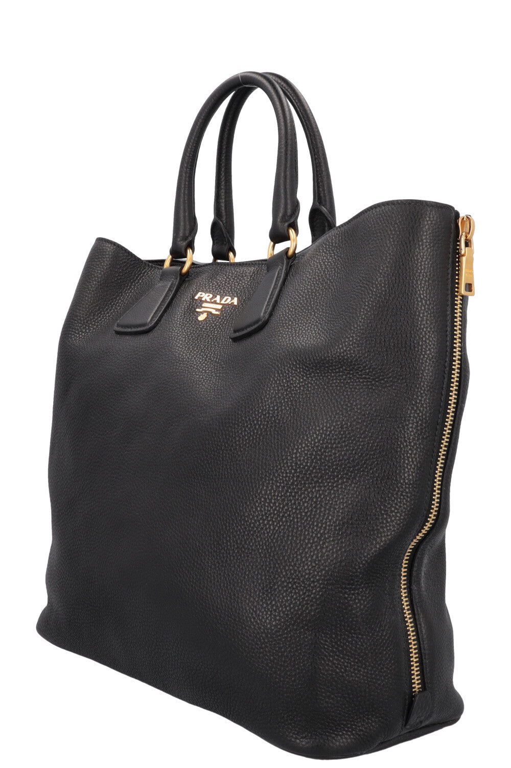 Die Prada Tasche aus hochwertigem schwarzem Leder ist die perfekte Everyday Bag. Mit ihrem grosszügigen Innenraum bietet sie ausreichend Platz für all deine täglichen Essentials, während das elegante Design in Kombination mit den goldenen Akzenten für einen Hauch von Luxus sorgt.