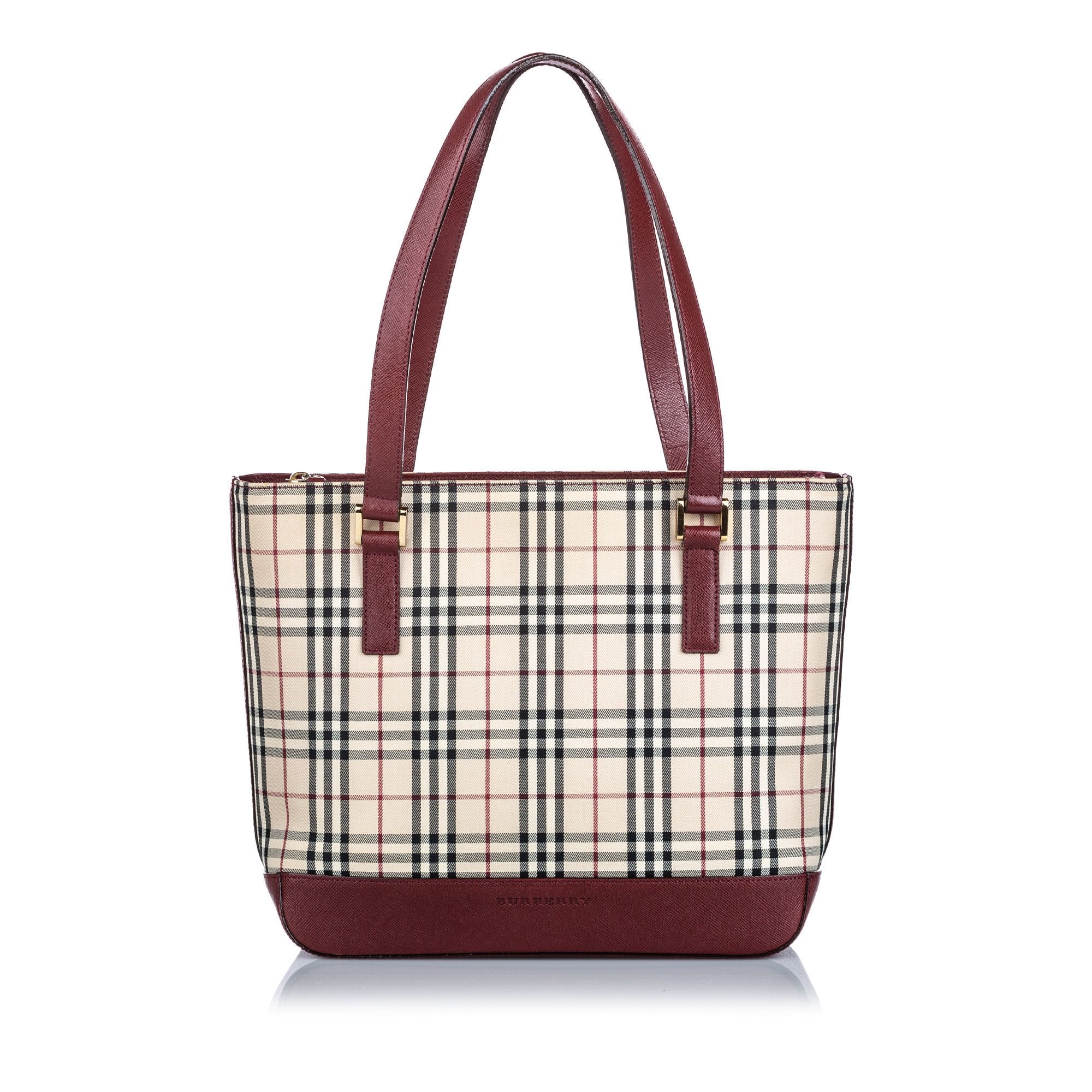 Burberry Brown Beige Canvas Fabric House Check Tote Bag UNITED KINGDOM