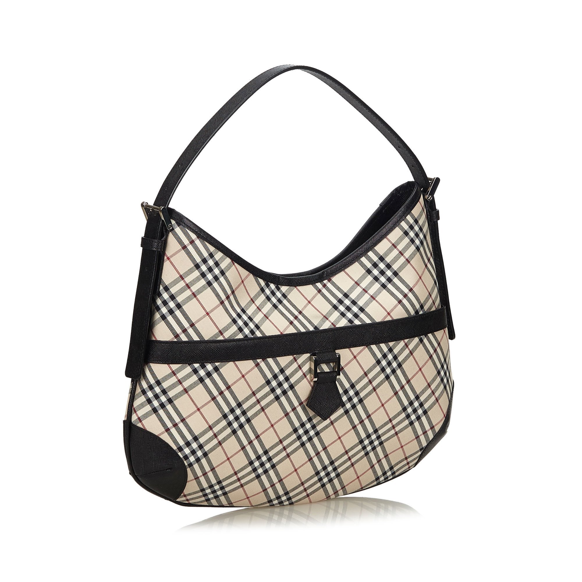 Burberry Brown Beige Canvas Fabric Nova Check Hobo Bag United Kingdom