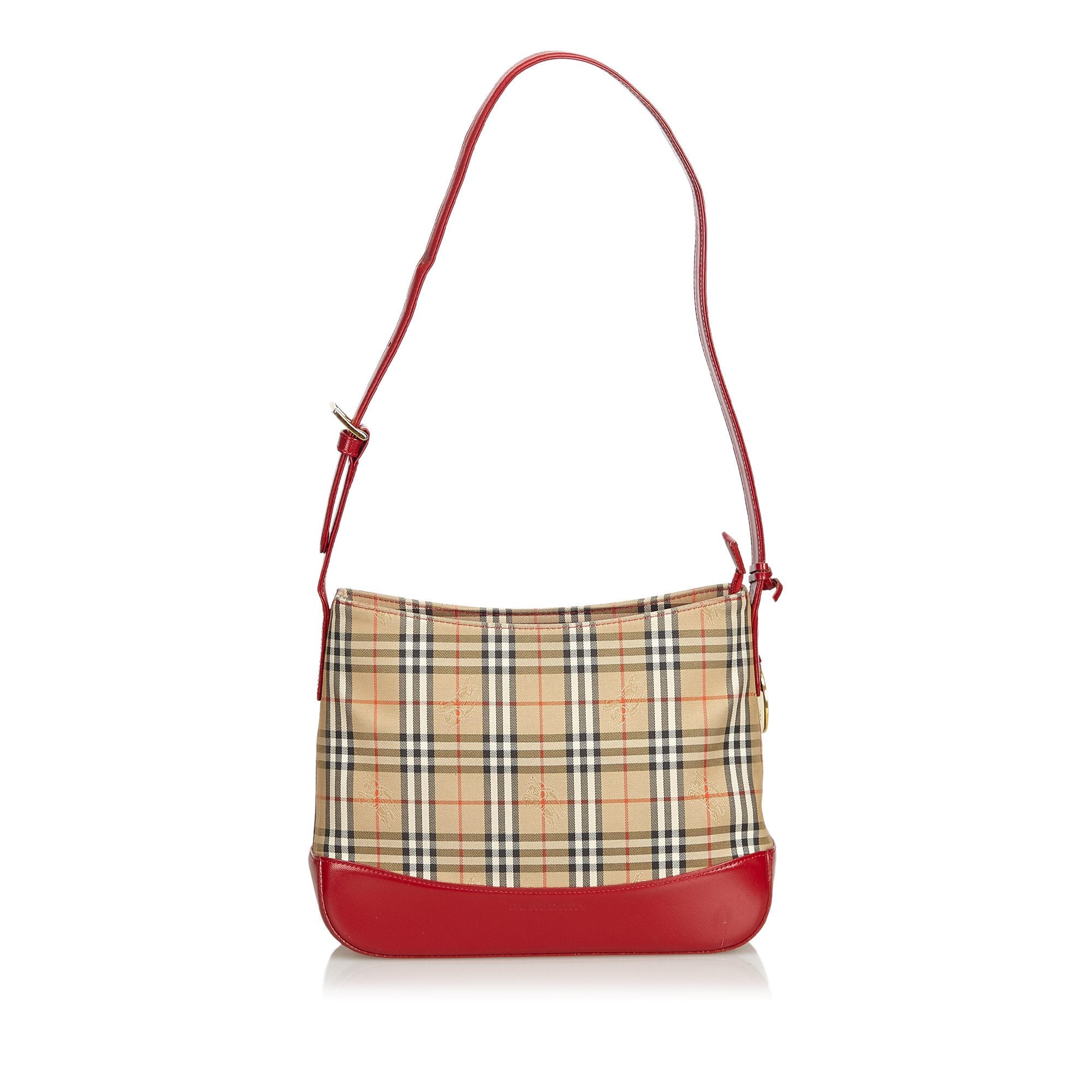 Burberry Brown Beige Jacquard Fabric Shoulder Bag United Kingdom