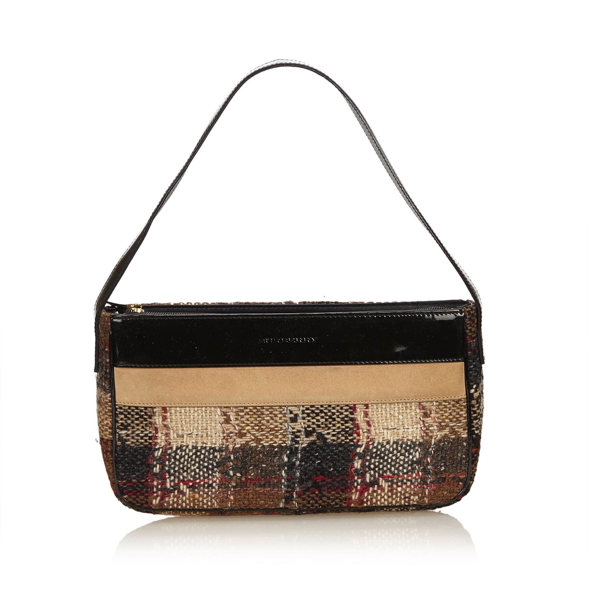 Burberry Brown Beige Wool Fabric Plaid Baguette United Kingdom