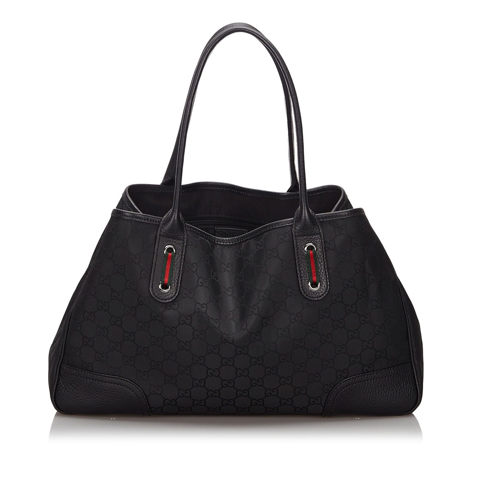 Gucci Black Canvas Fabric GG Princy Tote Bag Italy
