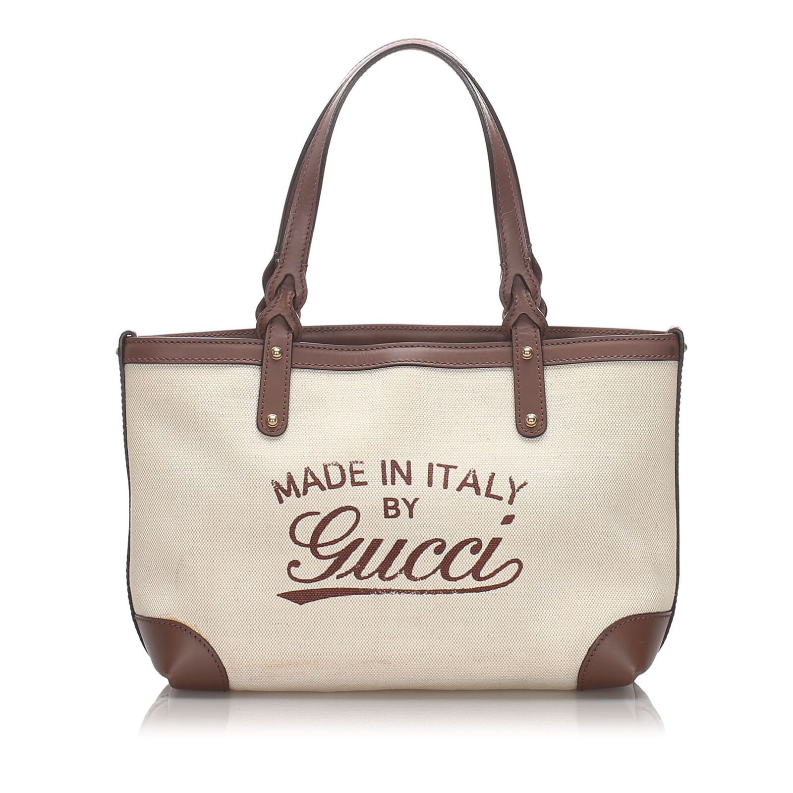Gucci Brown Beige Canvas Fabric Craft Tote Bag Italy