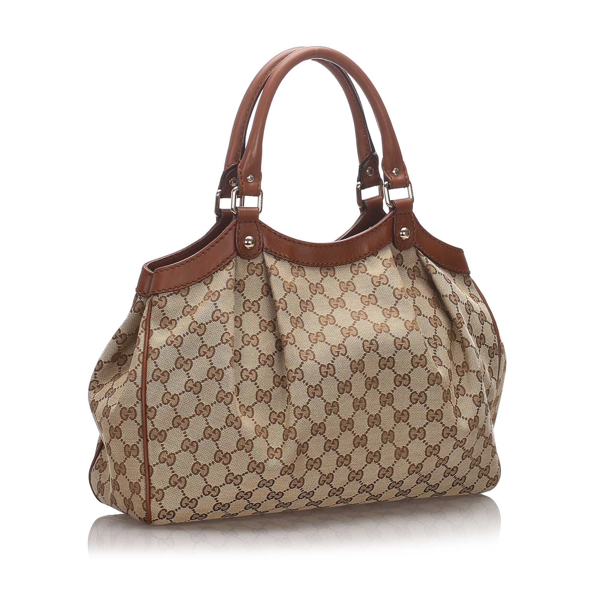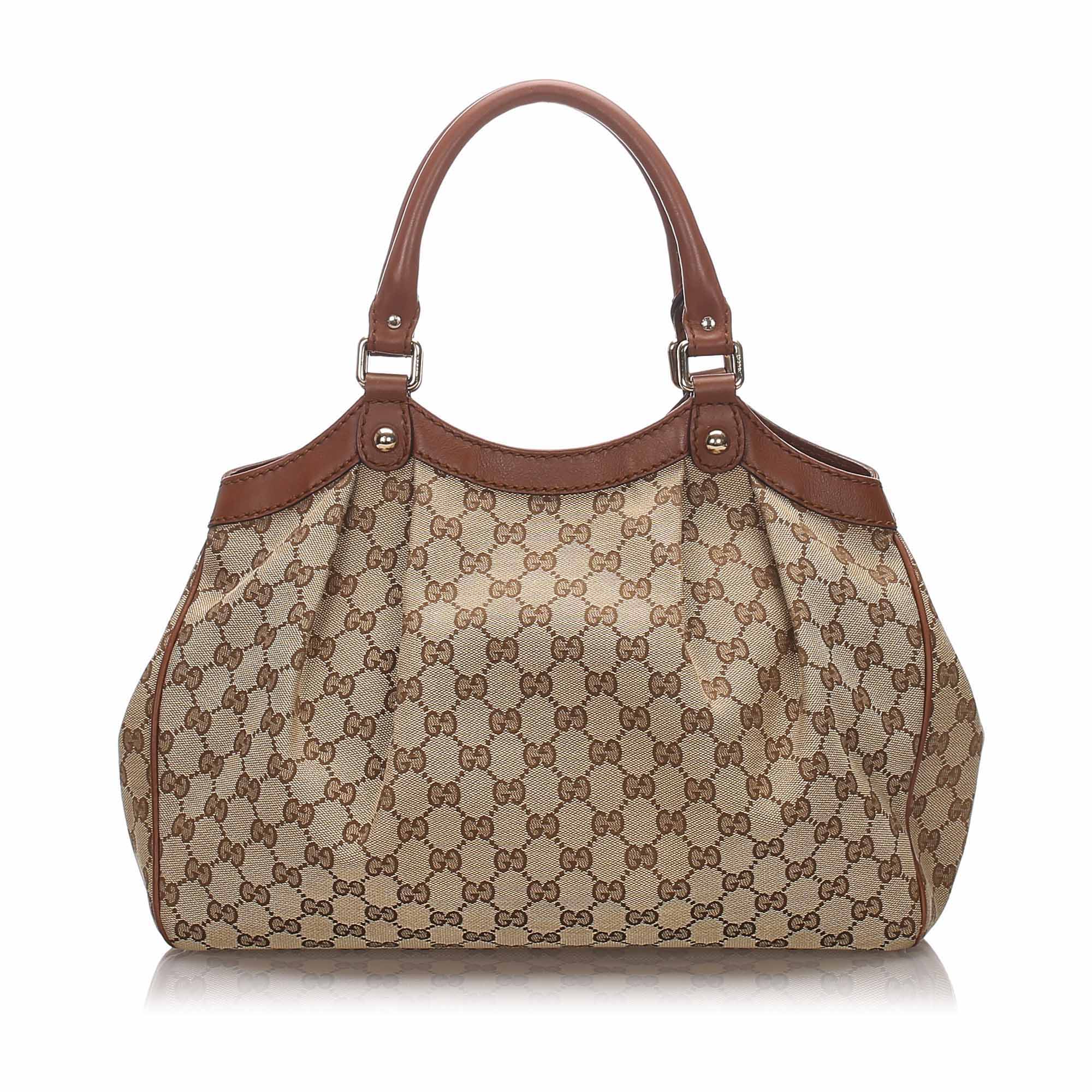 Gucci Brown Canvas Fabric Guccissima Sukey Tote Italy
