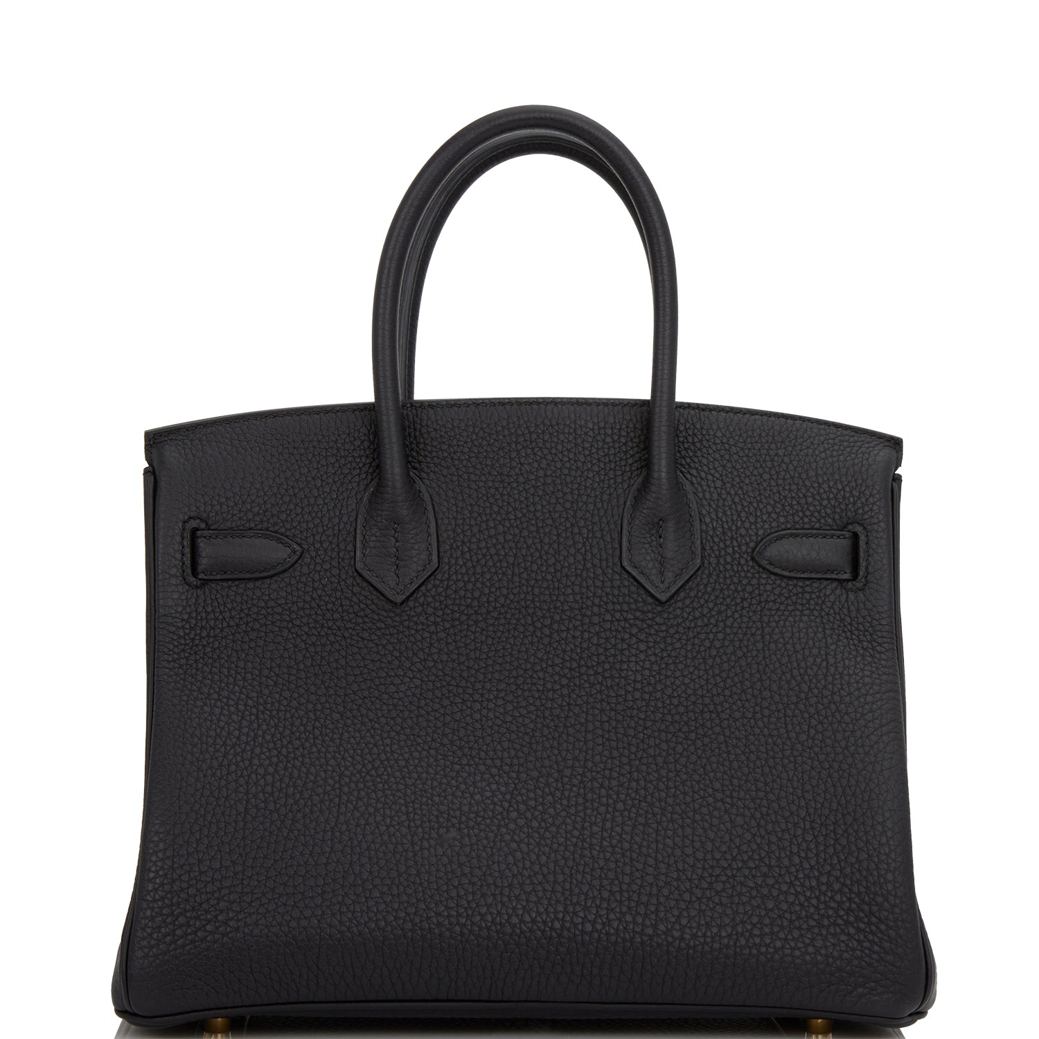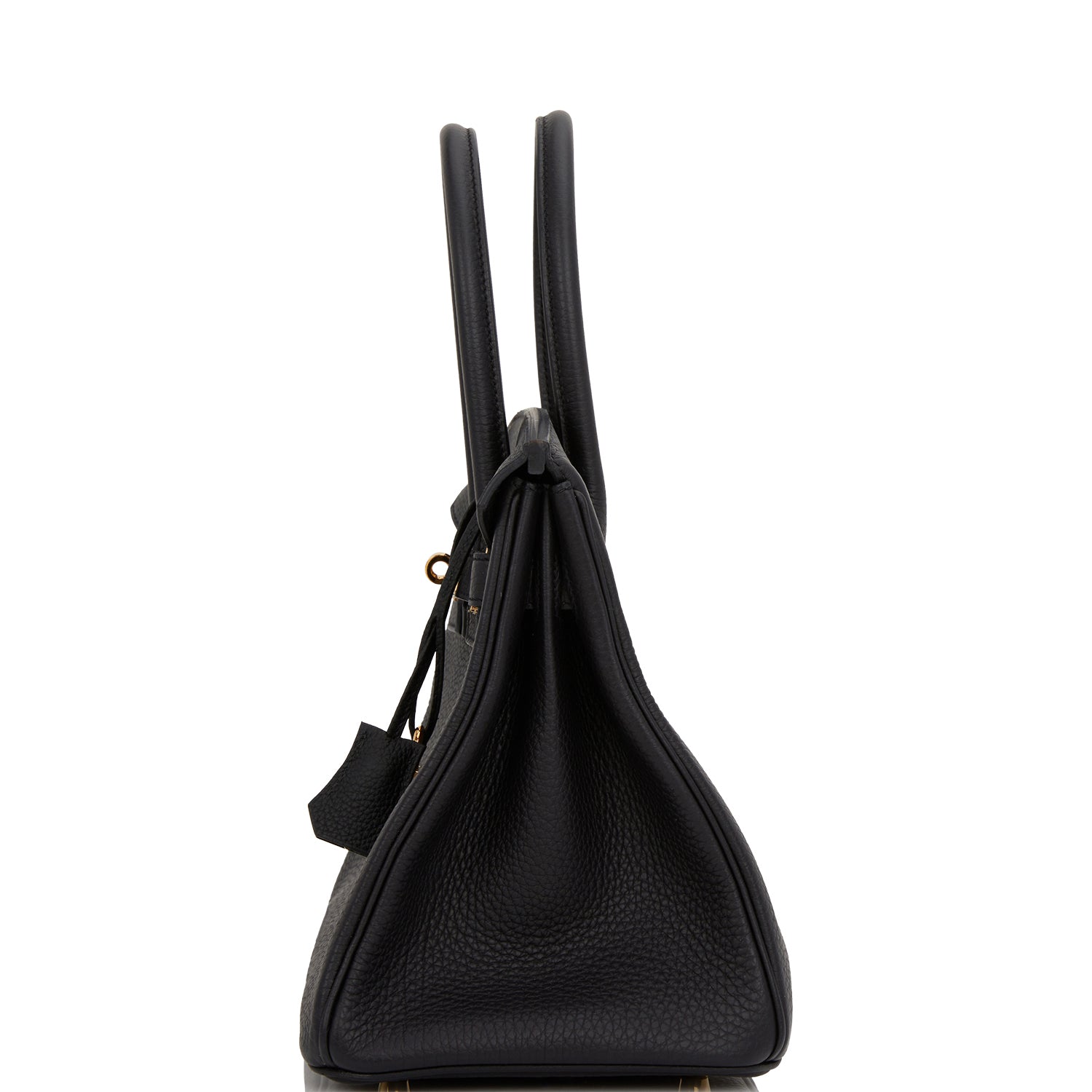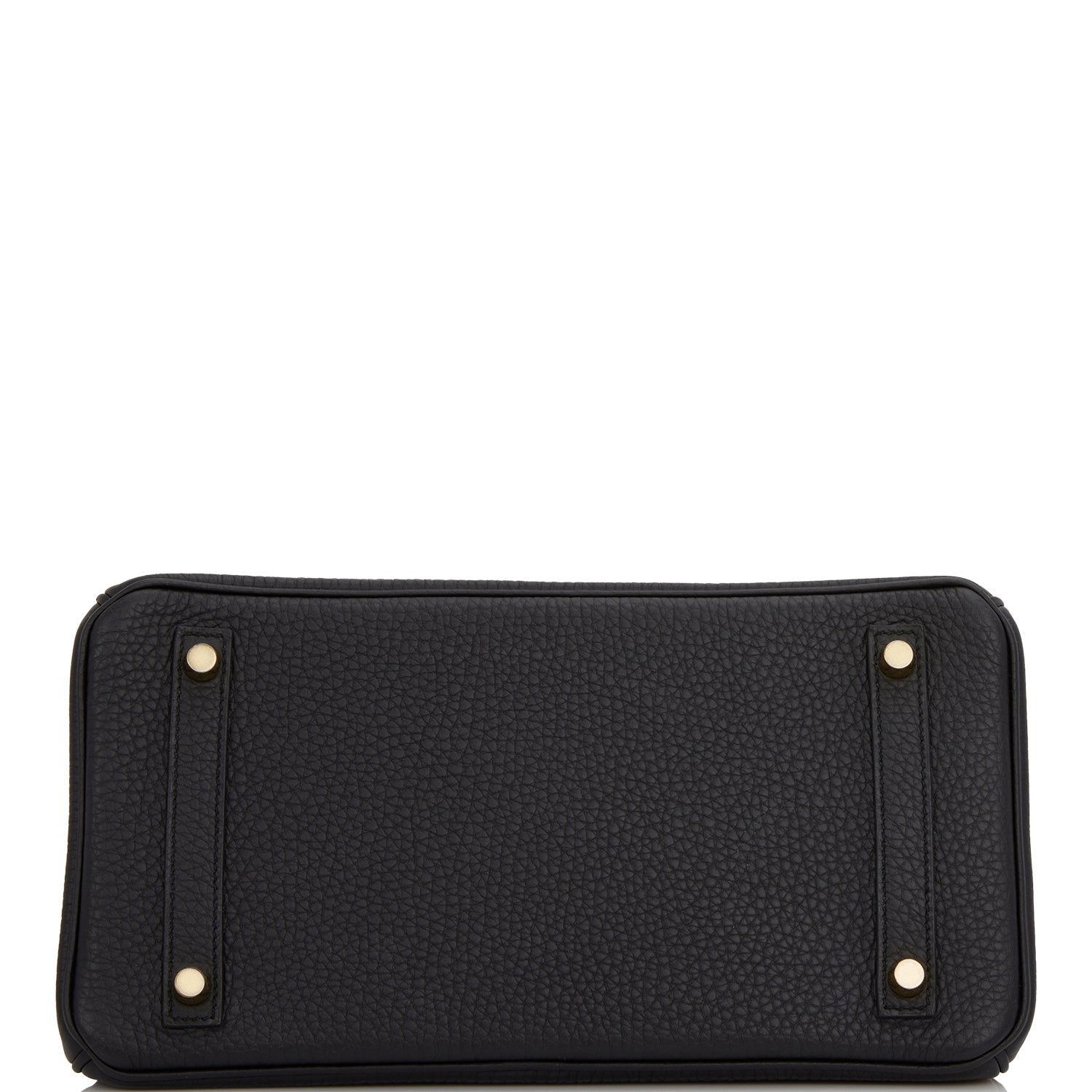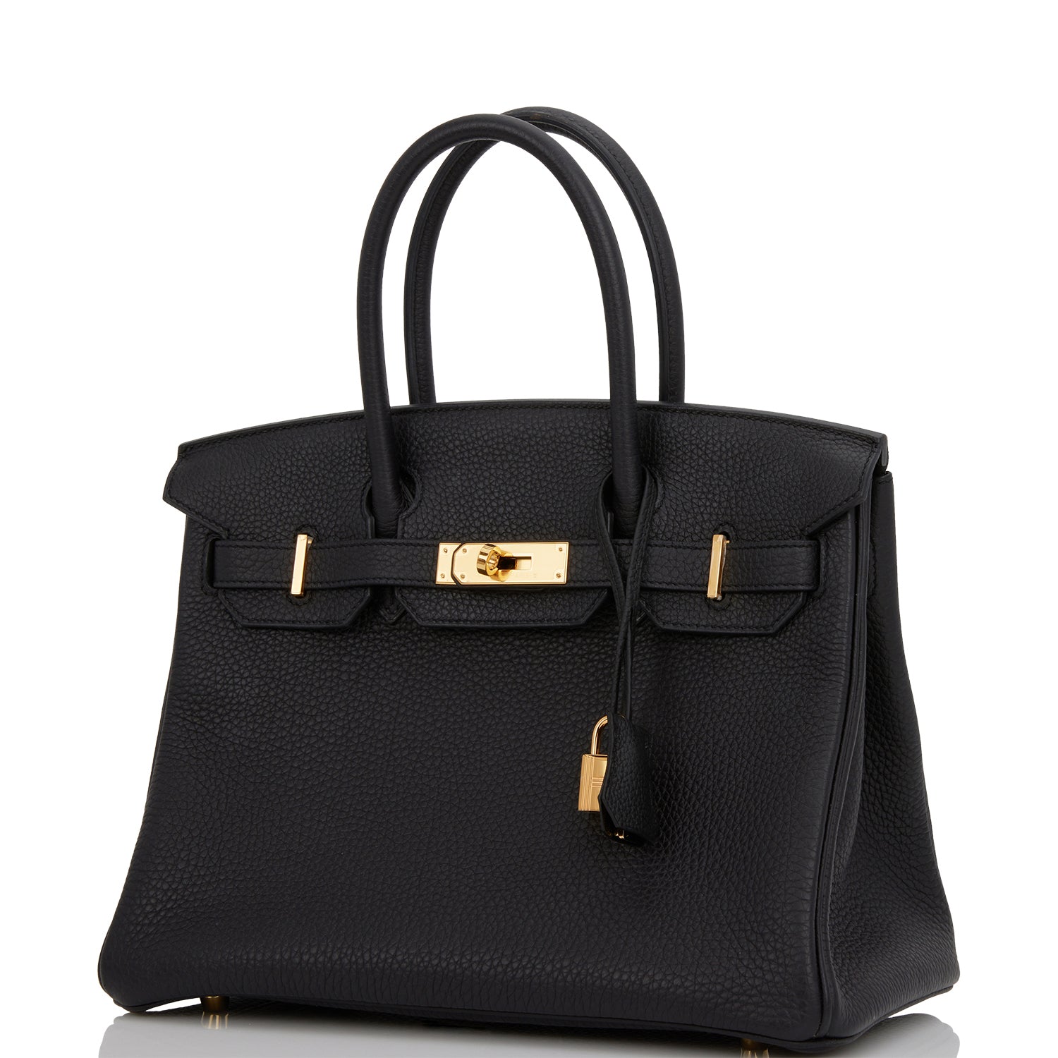 This Birkin is in Black togo leather with gold hardware and has tonal stitching, front flap, two straps with center toggle closure, clochette with lock and two keys, and double rolled handles.