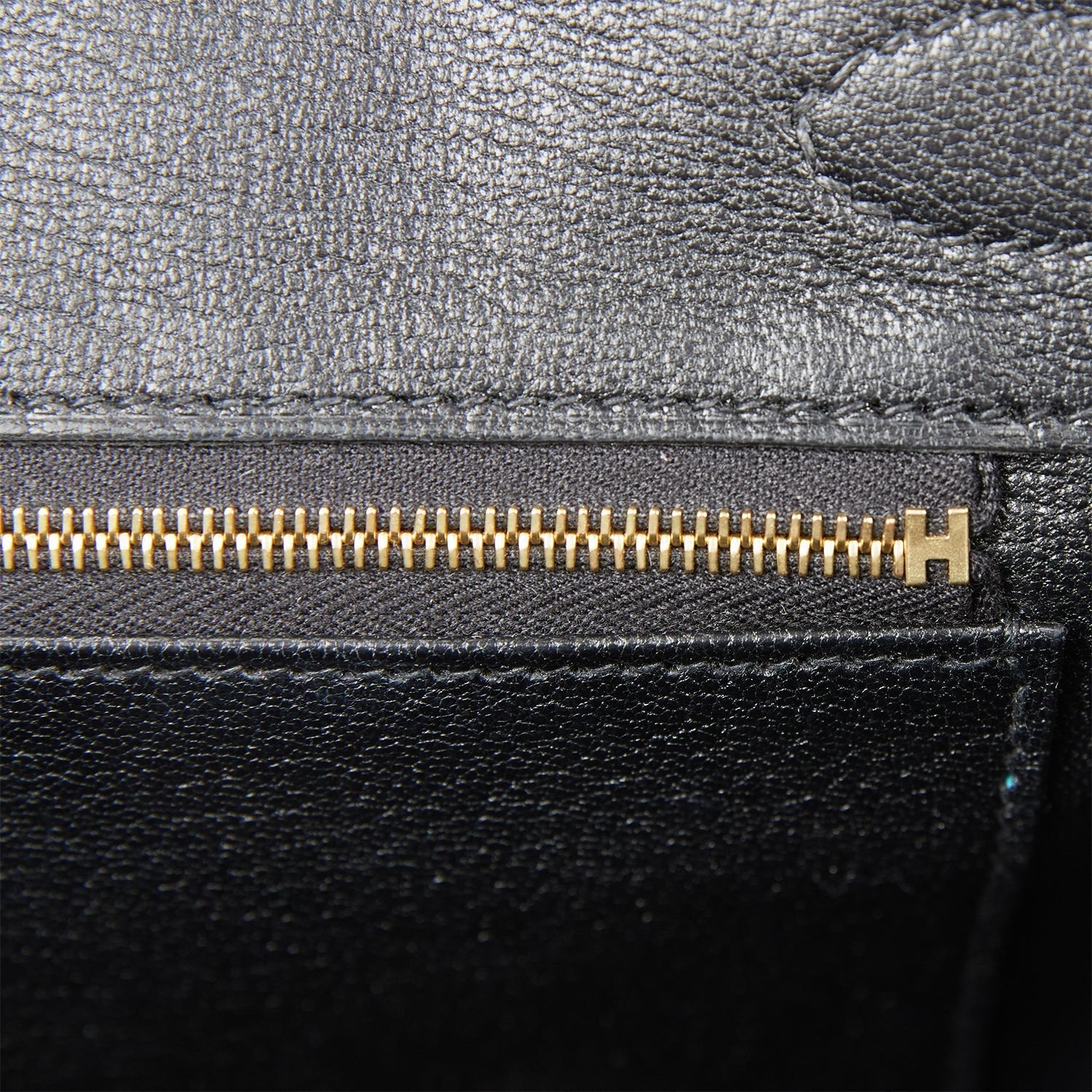 The interior is lined with black chevre and has one zip pocket with an Hermes engraved zipper pull and an open pocket on the opposite side.