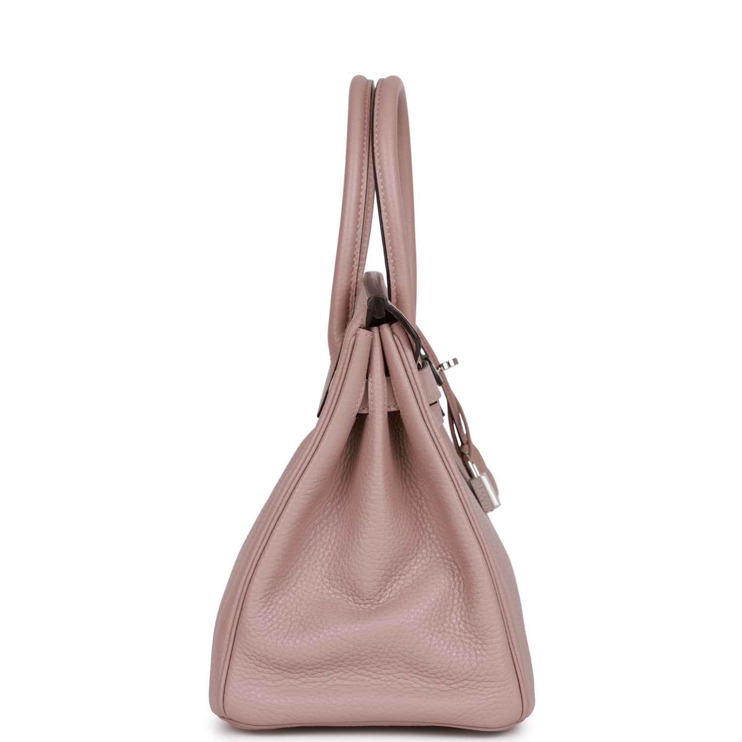 This Birkin is in Glycine clemence leather with palladium hardware and has tonal stitching, front flap, two straps with center toggle closure, clochette with lock and two keys, and double rolled handles.