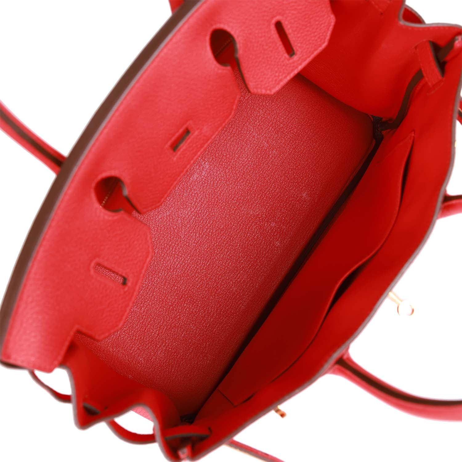 The interior is lined with Rouge de Coeur chevre and has one zip pocket with an Hermes engraved zipper pull and an open pocket on the opposite side.