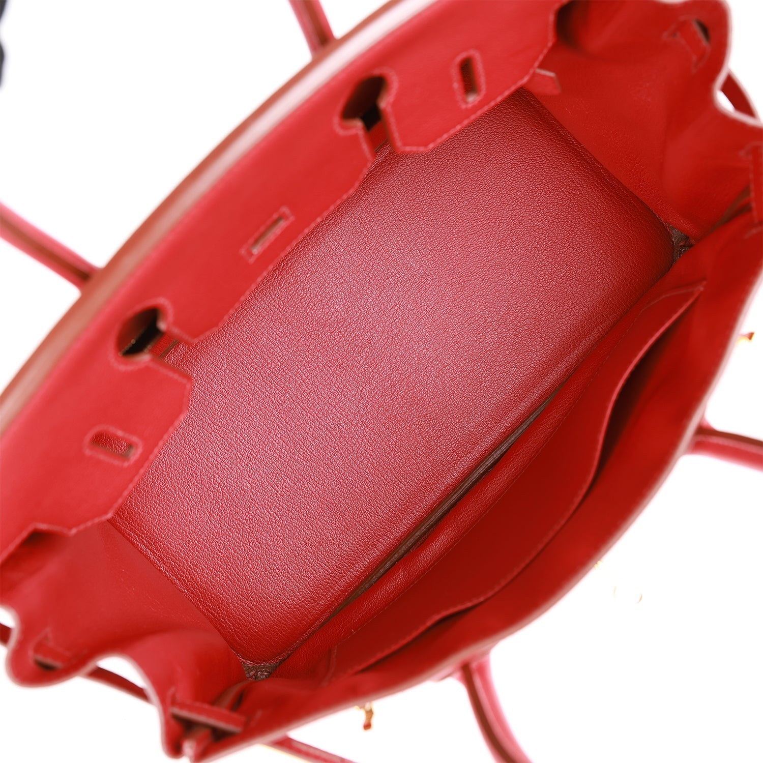 The interior is lined with Rouge Garance chevre and has one zip pocket with an Hermes engraved zipper pull and an open pocket on the opposite side.