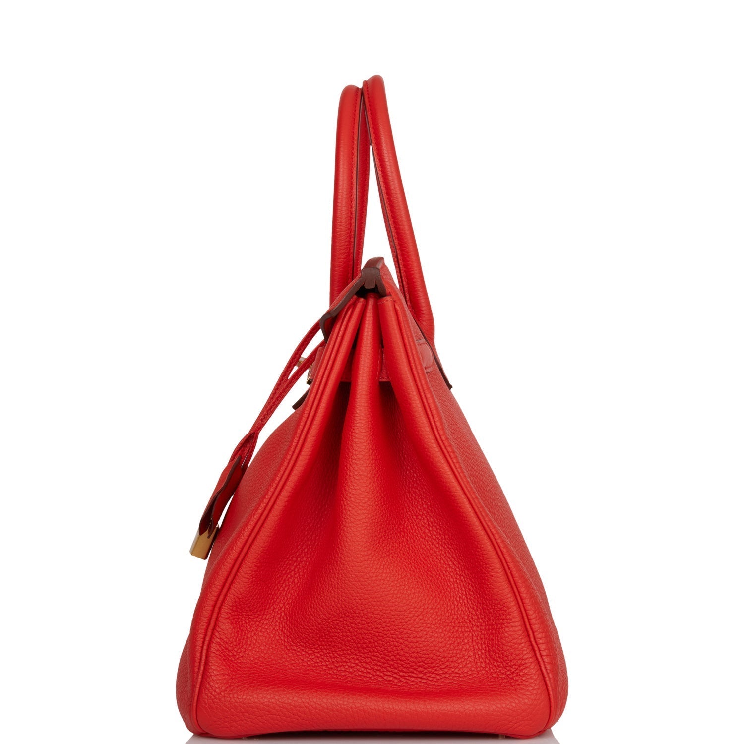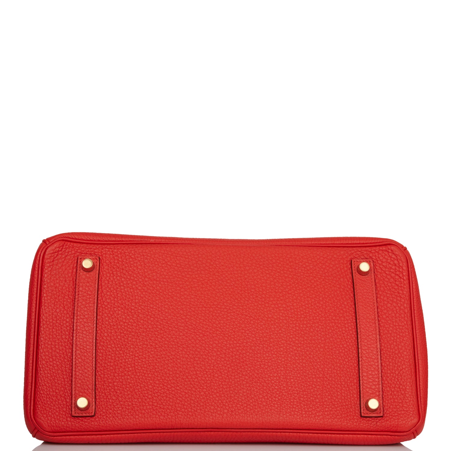 This Birkin is in Capucine togo leather with gold hardware and has tonal stitching, a front toggle closure, a clochette with lock and two keys, and double rolled handles.