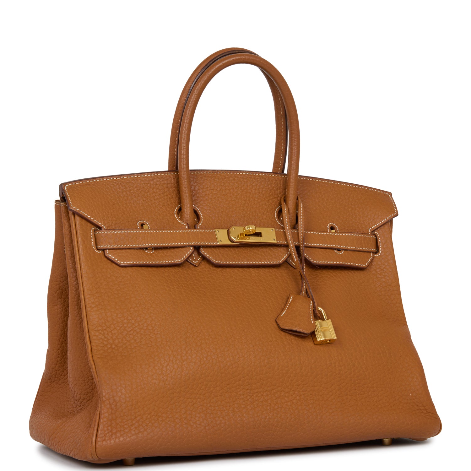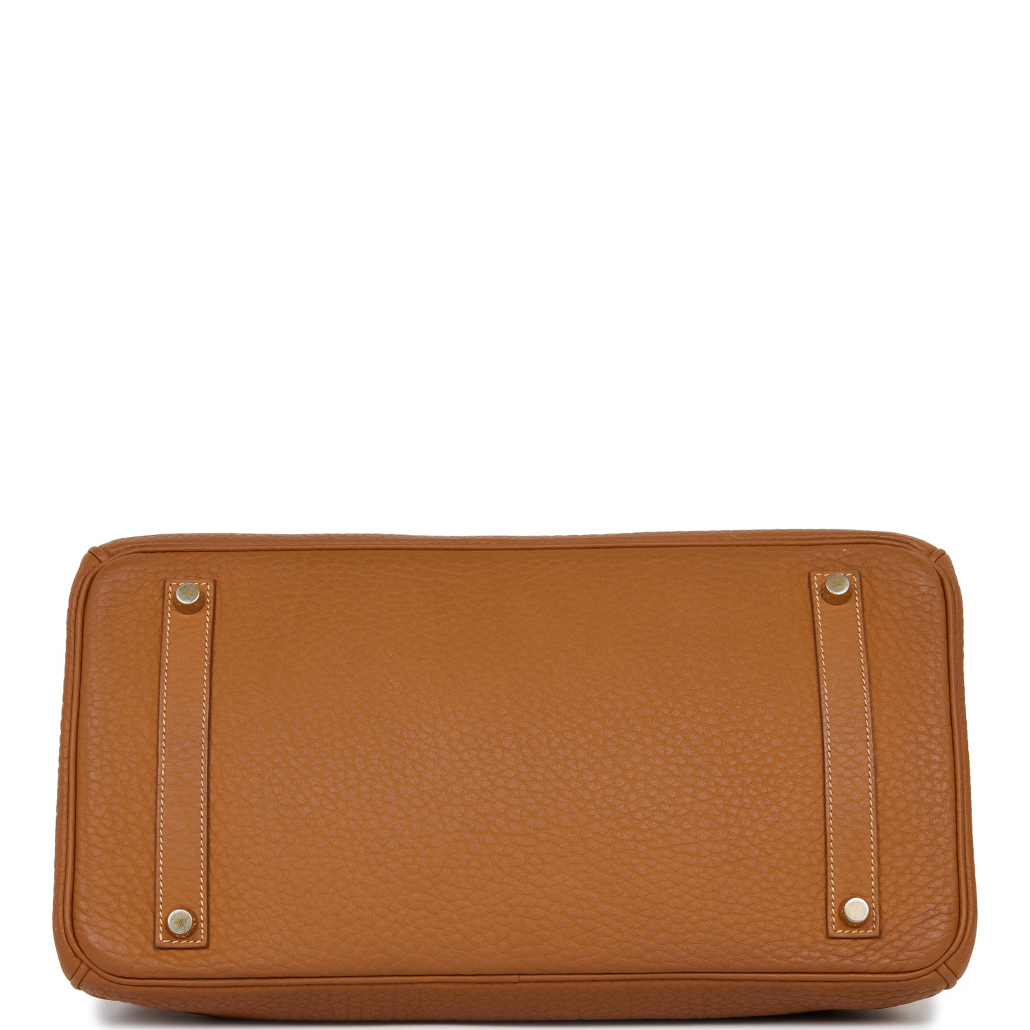 This Birkin is in Gold togo leather with gold hardware and has contrast stitching, two straps with front toggle closure, clochette with lock and two keys and double rolled handles.