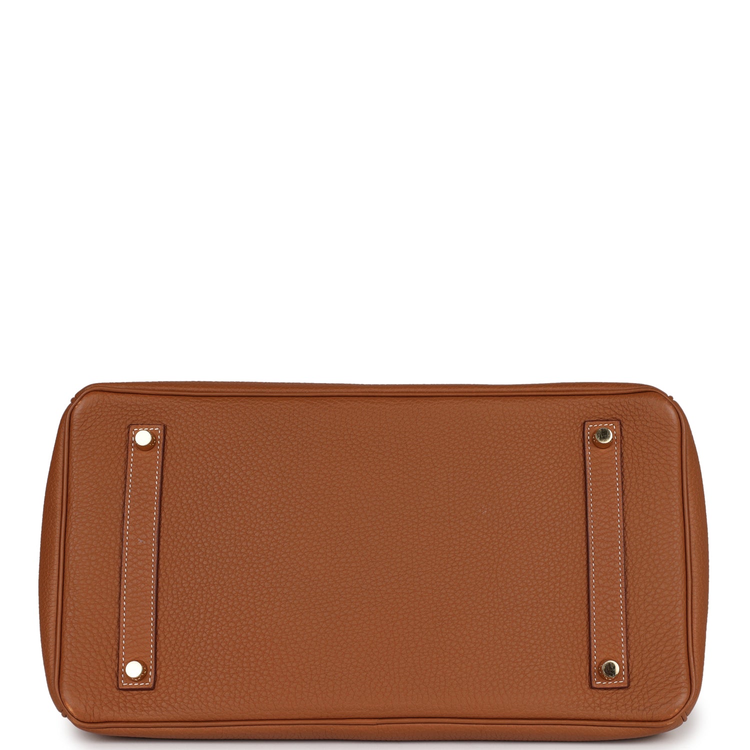 This Birkin is in Gold togo leather with gold hardware and has contrast stitching, two straps with front toggle closure, clochette with lock and two keys and double rolled handles.